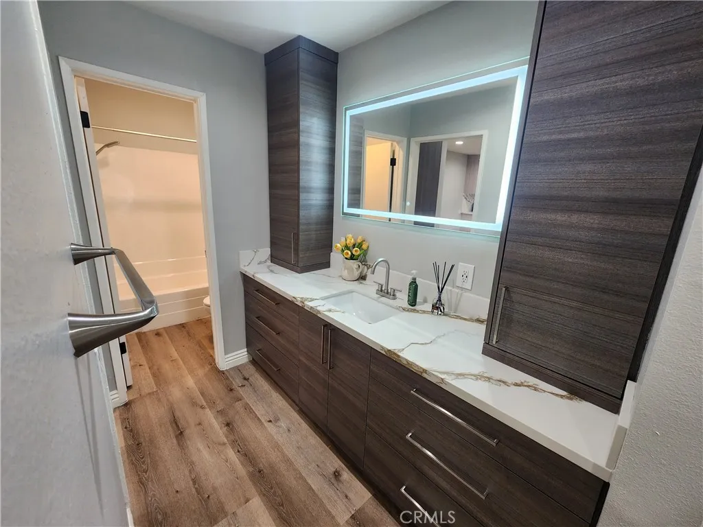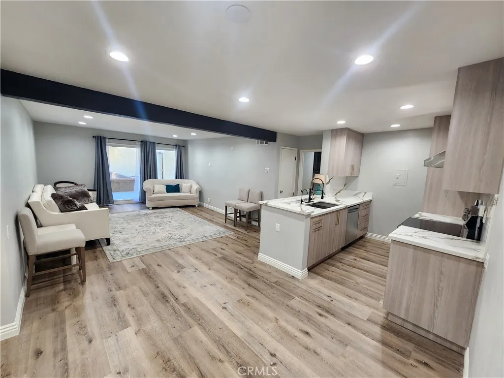 Gorgeous 2 bedroom -2 bath Condominium located in the heart of Encino. This unit has been completely upgraded with new custom kitchen cabinets, Quartz countertops, stainless steel appliances, vinyl flooring, central AC. This home provides 990 Sq ft of comfortable living space ,which is perfect for professionals or small households. The community has a pool, spa, sauna, recreation room, tennis court, gym. This unit is conveniently located near all shops, restaurants, freeways, hiking trails. Call today to schedule a showing!