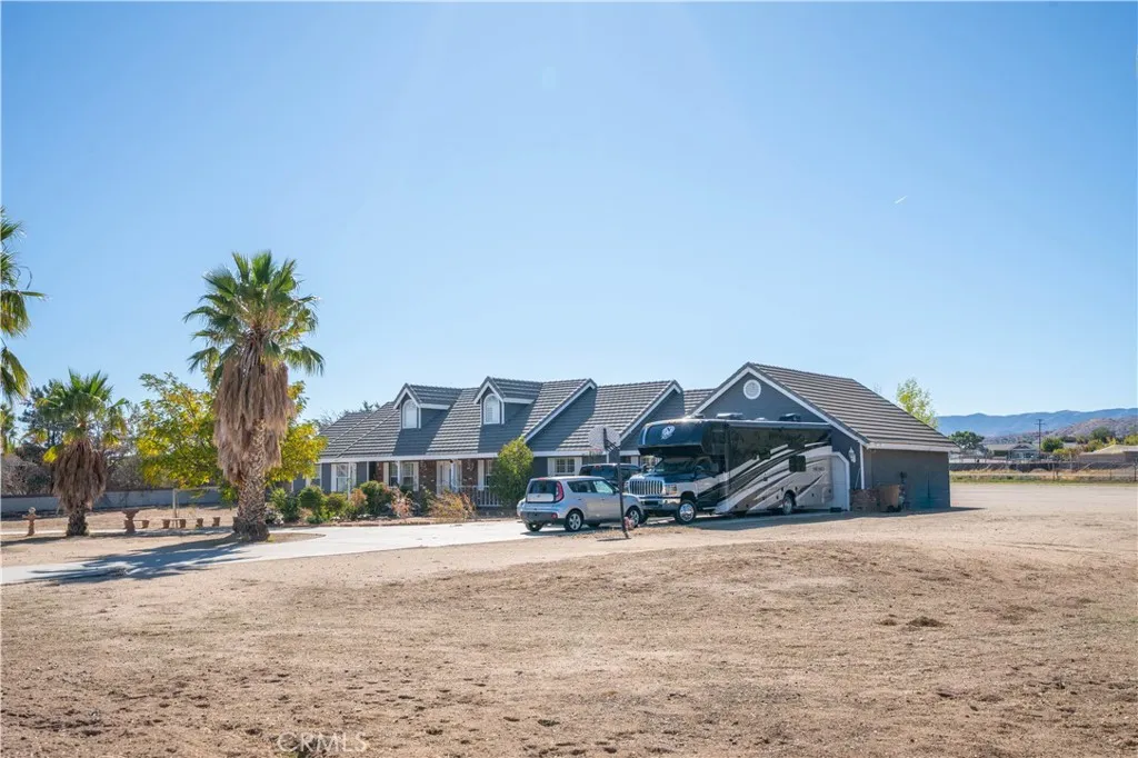 This great custom Home in West Palmdale, features 4 bedrooms, 4 bathrooms, and approximately 3,020 sq. ft. of comfortable living space. The home offers a spacious living room with a charming brick fireplace and tile flooring, a step-down family room, and a formal dining area perfect for entertaining. The large kitchen showcases oak cabinets and brand-new quartz countertops. The main suite includes a cozy fireplace, a walk-in closet, and a private bath. Additional highlights include a remodeled guest bathroom, laundry room, window shutters, and fresh interior paint throughout. Set on over 2.5 acres, this property also offers a circular driveway and plenty of space for outdoor living, recreation, or future improvements. A perfect blend of comfort, space, and country charm!