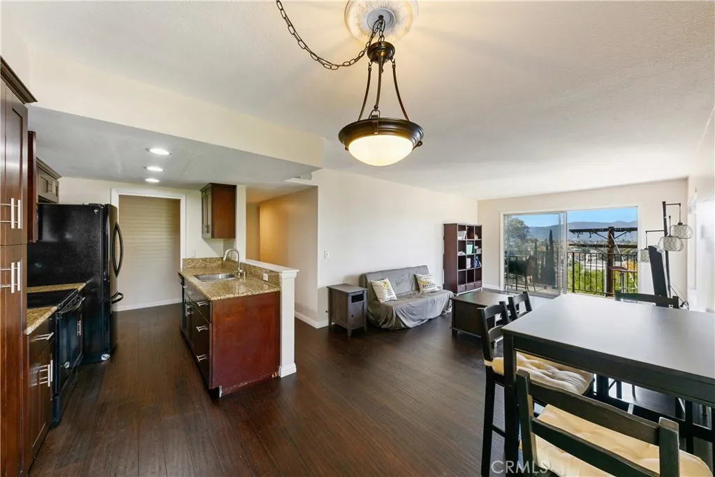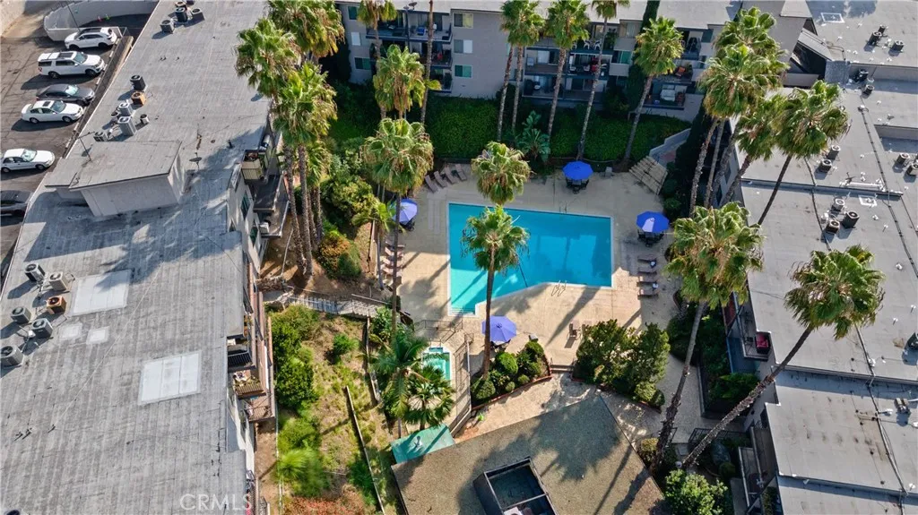 A beautiful top-floor penthouse-style condo with only one common wall and with city and mountain views. Located in prime Glendale on a cul-de-sac street. This beautifully designed 2-bedroom, 2-bathroom condo offers the perfect blend of comfort, style, and everyday convenience. Step inside to discover bright and inviting living spaces, featuring bamboo flooring, elegant white baseboards, and modern lighting that create a warm and refined atmosphere. The open-concept kitchen is both functional and welcoming, featuring stone countertops, dark wood cabinetry, ample storage, and a breakfast bar that seamlessly flows into the living and dining areas, ideal for entertaining or enjoying quiet mornings at home. A highlight of this home is the private balcony, a peaceful retreat where you can unwind and take in panoramic city and sunset views. A perfect spot to relax and recharge. Both bedrooms are filled with natural light and offer generous closet space, complemented by continued bamboo flooring, which balances comfort with thoughtful design. Interior features include: an updated electrical panel, an updated AC controller, a newer HVAC system, and water heater. The property was remodeled about 5 years ago. Enjoy the best of community living with resort-style amenities, including a sparkling pool, Spa, a serene courtyard, and an on-site gym. Practical perks include two dedicated parking spaces with additional storage, as well as ample guest parking. In a city where convenience and charm are hard to come by, this Glendale gem delivers it all with stunning views that remind you to slo