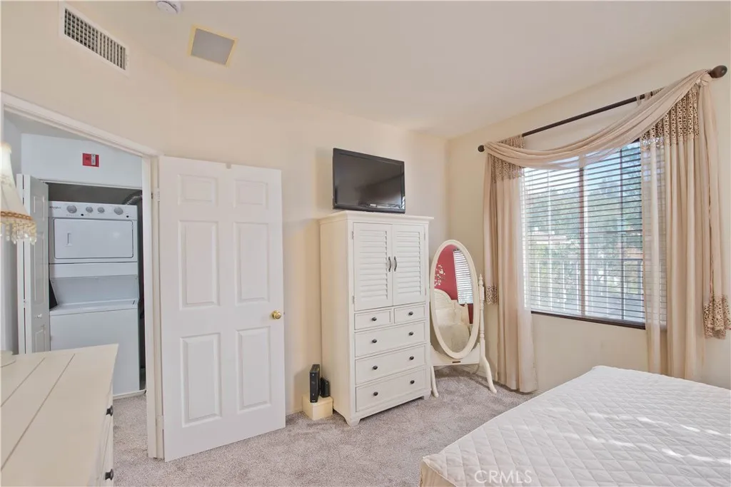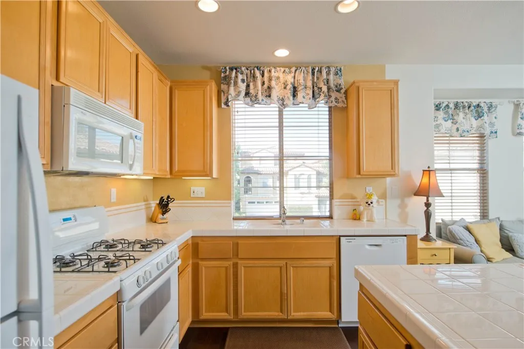 Welcome to this charming 2 bedroom, 2.5 bathroom townhome located in the highly sought-after Village Walk community in Valencia Northpark. Stroll along the beautifully landscaped pathways shaded by mature trees and arrive at the inviting front entrance. Inside, the first floor features a cozy living room with a warm fireplace, beautiful birch wood flooring, and serene views of the patio and greenbelt. Upstairs, the second level boasts a formal dining room that overlooks the living room, creating an open feel. Adjacent to the dining space is the bright kitchen, complete with tile countertops, white appliances including a new dishwasher, and a breakfast bar. The kitchen seamlessly connects to a comfortable family room. A convenient powder room is also located on this level. Birch wood flooring continues throughout the first and second floors, adding to the homes cohesive design. A built-in desk at the stair landing provides an ideal workspace for a home office setup. On the third floor, youll find both bedrooms. The primary suite features a walk-in closet and an en-suite bathroom with luxury vinyl flooring. The secondary bedroom also includes its own private bathroom with a shower/tub combo and luxury vinyl flooring. The laundry area, equipped with a stackable washer and dryer, is conveniently located near both bedrooms for added ease. Step outside to the private patioan ideal space for BBQs, morning coffee, or simply relaxing while enjoying the peaceful greenbelt views. Additional highlights include an attached two-car garage with direct access and access to the communitys s