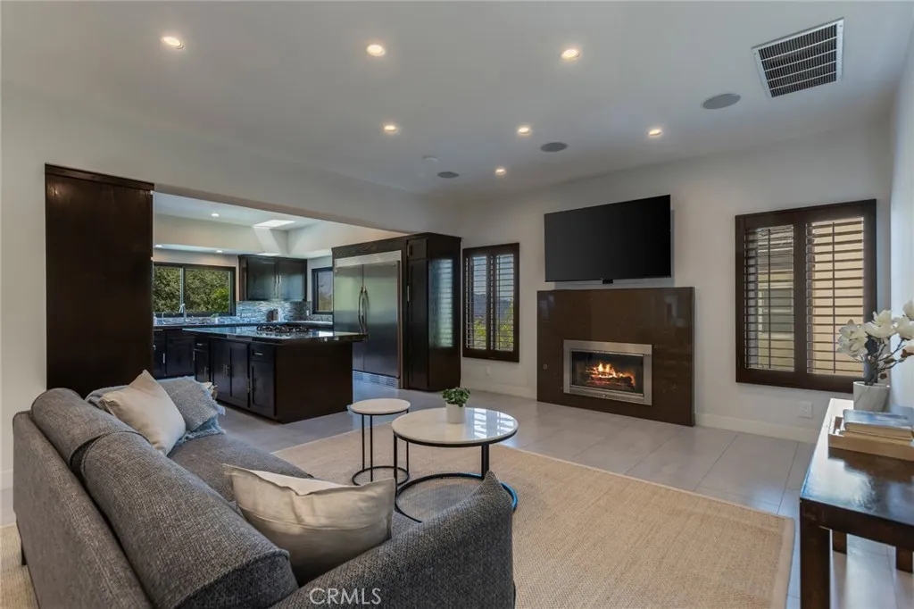 Poised along Glendales most coveted address, Rimcrest Drive, this contemporary estate unfolds across more than 6,000 square feet of inspired design, marrying architectural artistry with resort-style amenities. Spanning three impeccably crafted levels beneath a striking metal roof, the residence commands unobstructed vistas that sweep across the canyons. From the upper levels, the views extend to the glittering skyline of downtown Los Angeles. The principal level serves as the epicenter of daily life, where voluminous living and dining spaces are bathed in natural light and framed by soaring ceilings, floating staircases, and walls of glass. A chefs kitchen anchors the floor-plan, complemented by a refined office/library that affords both privacy and versatility. The lower entertainment level is devoted to leisure and conviviality, offering an expansive lounge, sleek bar, full bath with shower, and a secondary laundry area. This floor flows seamlessly to the outdoors, where a heated saltwater pool, a fully appointed covered barbecue kitchen, and generous terraces create an idyllic retreat for alfresco entertaining beneath the stars. The upper level is reserved for private living, encompassing four bedrooms and three bathrooms, including a primary suite of grand proportion. Here, a spa-inspired bathroom, an oversized walk-in closet, and a dedicated shoe closet evoke the ambiance of a private dressing salon, while an additional laundry area enhances convenience. Distinguished appointments include three fireplaces, three HVAC systems, a whole-house audio system, dumbwaiter, wat