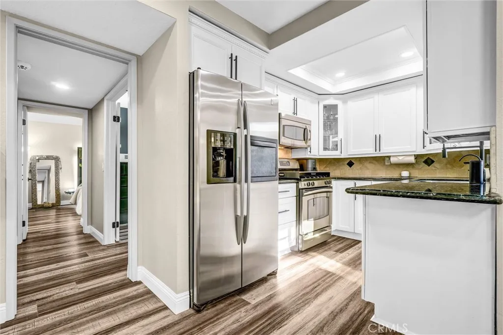 GET READY TO FALL IN LOVE WITH YOUR NEW TOWNHOME! Step into this beautiful turn-key 2-bedroom, 2-bathroom townhome that perfectly blends comfort, style, and modern convenience. Nestled within the desirable Embassy Park gated community, this residence offers privacy and peace of mind, along with access to wonderful amenities including a sparkling pool, lush green spaces, and abundant guest parking. Inside, youll find a fully remodeled kitchen featuring sleek cabinetry, elegant countertops, recessed lighting, and high-end finishesideal for both daily living and entertaining. The bright and airy living room boasts vaulted ceilings, a cozy gas fireplace, and abundant natural light streaming through newer dual-pane windows with electric remote window coverings. Step out to your private deck patio, perfect for morning coffee or evening relaxation. Both bathrooms have been thoughtfully remodeled with modern fixtures and finishes, including a beautiful en-suite bathroom in the primary bedroom. Throughout the home, enjoy new waterproof vinyl flooring, motion-sensor lighting, newer paint, and a contemporary feel. Additional highlights include a separate interior laundry area, an attached two-car garage for convenience, an EV port, and extra storage with a new Lift Master safety lock door. Located in a desirable neighborhood with excellent nearby schools, this home truly has it allmodern updates, community amenities, and a welcoming atmosphere. It is just minutes away from Disneyland and Knotts Berry Farm and centrally located to commute to Los Angeles and Orange County with access to