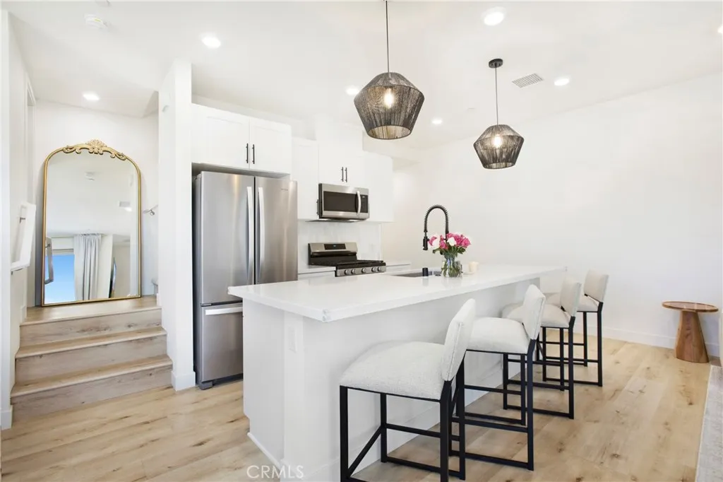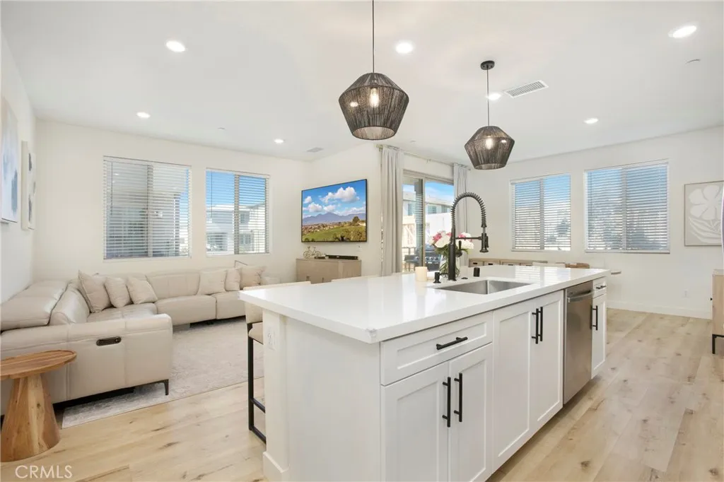 Welcome to the beautifully designed town home located in the Hudson gated community of Placentia. Newly built at the end of 2022 with an inviting open floor plan that features upgraded luxury vinyl flooring, high ceiling, recessed lighting throughout the home, dual-pane windows and sliding door that leads to the balcony, perfect for outdoor sitting, a walk-in pantry to store snacks, kitchen island with quartz countertop equipped with a single bowl sink and tiled marble back splash offering a clean aesthetic to the white shaker cabinetry matching cohesively with powder room. This turn-key home was thoughtfully built for energy efficiency featuring solar panels, a tank-less water heater, enhanced insulation. Enjoy the convenience of smart home features - garage opener, connected thermostat and smart door. Located on the third floor you'll find all generous sized bedrooms, laundry area and a linen closet. Primary bedroom features a walk-in closet, en suite bathroom includes a step in shower with glass, tiled flooring, quartz counter top. Two-car garage, direct entry with plenty of space for storage. Community offers, BBQ area, fire-pit to hang out, Playground for tot lot, Basketball Court and Dog Park. Conveniently located near shopping centers, restaurants, 91/55/57 freeways and walking distance from schools.
