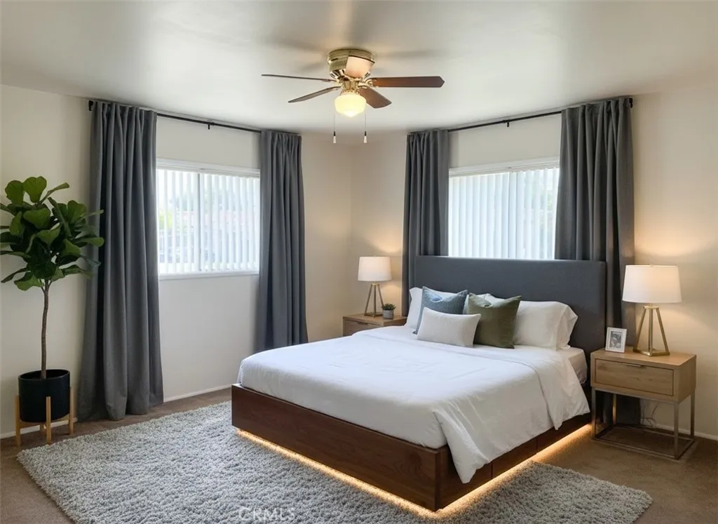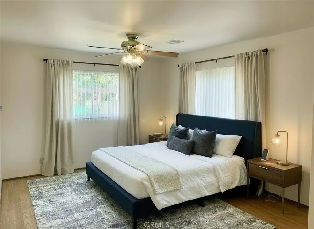 Dont miss this fantastic opportunity to own a spacious 4-bedroom, 2-bathroom detached home, nestled on a quiet cul-de-sac. With 1,435 square feet of living space, this property offers plenty of room for comfortable living. Enjoy relaxing evenings by the large, wood-burning fireplace or take advantage of the inviting eat-in kitchenperfect for family meals. The beautifully maintained, professionally landscaped garden features an abundance of fruit trees and three separate patio areas, making it great for outdoor entertaining or unwinding in your own private oasis. An indoor laundry room adds convenience, and the detached garage offers additional storage or parking space. Newer A/C Heater & Roof. Located close to freeways, public transportation, and shopping, this home gives you easy access to everything you need. Make this wonderful property yours today!