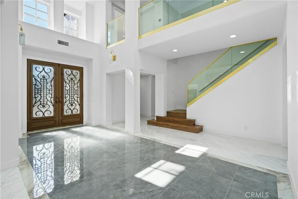 View, View, View! Located in the prestigious guard-gated community of Westridge, this exceptional home showcases breathtaking panoramic views and luxurious upgrades throughout. Offering over 5,000 sq. ft. of living space on a 20,000+ sq. ft. lot, this residence blends elegance, comfort, and functionality. Step through the grand double-door entry into an open and light-filled floor plan featuring tile flooring, recessed lighting, and expansive living areas. The formal living room impresses with soaring ceilings, a statement fireplace, and views of the beautifully landscaped front yard. The gourmet kitchen is designed for both style and practicality, featuring stainless steel appliances, quartz countertops, and a large center islandperfect for family meals and entertaining. Adjacent to the kitchen, the spacious family room offers a cozy fireplace and picture windows that frame stunning backyard views. The first floor also includes a private en-suite bedroom, ideal for guests or multi-generational living. Upstairs, the primary suite serves as a true retreat with high ceilings, a private sitting area with fireplace, and a balcony overlooking the pool and valley views. The spa-like primary bathroom includes dual sinks, a soaking tub, a separate shower, and an expansive walk-in closet. Two additional bedrooms share a Jack-and-Jill bathroom, while another en-suite bedroom features its own private balcony with front yard views. Step outside to a resort-style backyard perfect for entertaining, complete with a sparkling pool and spa with waterfalls, multiple seating areas, and lush l