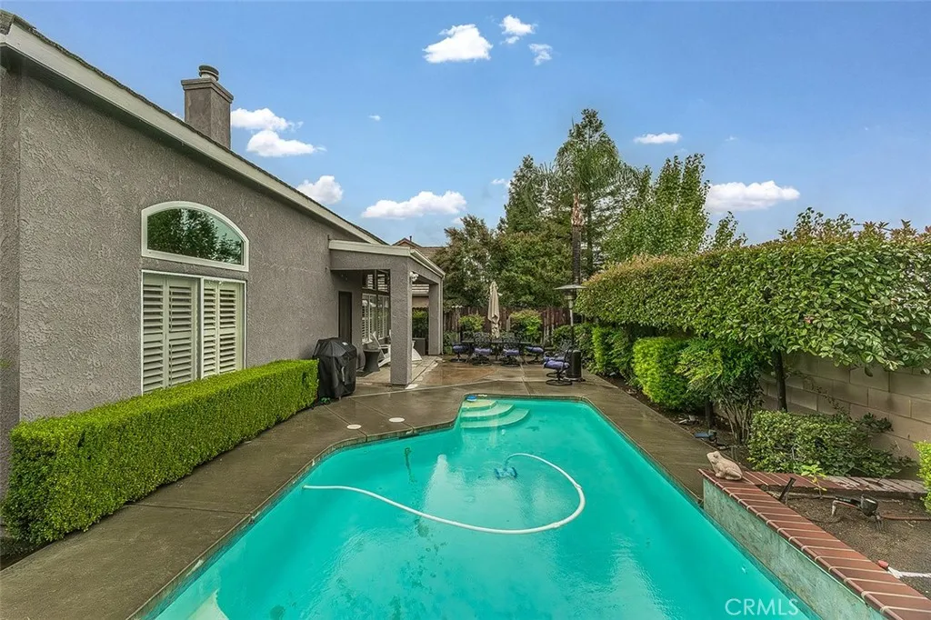 Pool and Owned Solar. This outstanding, immaculate Mansionette Palisades 3 bedrooms, 2.5 bathrooms has been beautifully updated and shows pride of ownership with loads of upgrades including shutters throughout this great home. Enjoy very low energy bills with owned solar that was installed in March, 2023 plus a 2 year old HVAC and heat pump and a whole house fan. When you enter this immaculate home, you will appreciate the easy care tiled flooring and the open feeling this floorplan has to offer. The fabulous remodeled kitchen with granite countertops and glass splashback is a delightful choice of decor and design. The appliances are top of the line GE Profile with a gas stove and cooktop and a microwave/convection oven combo. There is a convenient eating area nook as part of the kitchen plus an eating bar and a larger dining room area adjacent to the great room that gives you many options and locations to enjoy and use for entertaining. The great room has a very open feeling with a gas fireplace and many windows and convenient access to the rear yard. The primary bedroom with a large walk in closet and deluxe bathroom are nearby and downstairs for your comfort and accessibility. The laundry room is conveniently located and has access to the very nice two car garage. Upstairs are two bedrooms and a bathroom plus a loft area that could be used for an office, reading area, etc. You will love all the storage and closets this home has to offer. Enjoy your own private swimming pool and lovely backyard with loads of room for entertaining and relaxation. The easy care yard adds to