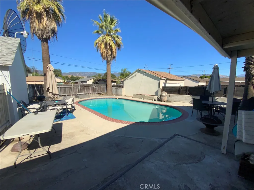 Charming Pool Home in a Prime Location! Welcome to this beautifully maintained 3-bedroom, 1-bath home offering a 1,202 sq. ft. of stylish living space. Step inside to find elegant laminate wood flooring throughout and a bright, updated kitchen thats perfect for everyday living and entertaining. The spacious backyard features an inviting in-ground swimming pool ideal for family gatherings and summer fun! Situated on a large 7,700+ sq. ft. lot, this property offers plenty of room to relax and play. Conveniently located less than a mile from the 215 Freeway and close to shopping centers and top-rated schools, this home combines comfort, convenience, and charm all in one.