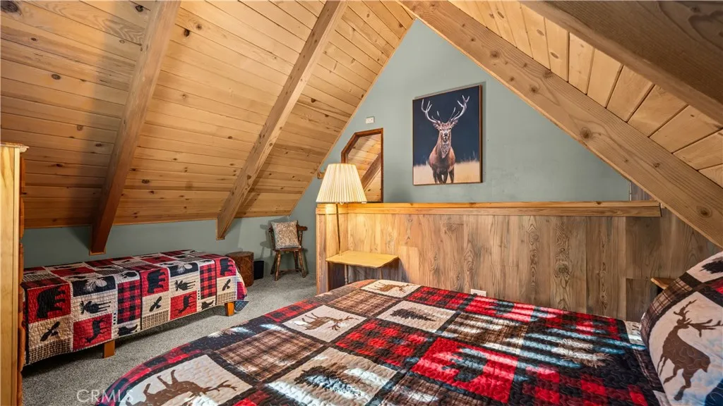 Imagine stepping into this beautifully updated, yet classically cozy, two-bedroom, one-bath cabin nestled right in the heart of Sugarloaf. It's the perfect blend of rustic charm and contemporary comfort! The cabin retains its appealing cabin look, featuring natural wood accents and a welcoming atmosphere, but has been thoughtfully modernized. You'll appreciate the new, energy-efficient windows that not only flood the space with natural light but also offer stunning views of the surrounding environment. The interior boasts a modern aesthetic, giving it a fresh, clean feel while maintaining that essential Big Bear warmth. This cabin offers the best of both worlds: a peaceful, woodsy sanctuary with all the modern amenities, located just minutes from Big Bear Lake and all the action. The magic continues right into the backyard. Completely enveloped by beautiful, towering pine trees, the outdoor space feels like a forest sanctuary. This stunning setting is ideal for relaxation, featuring both a barbecue grill and a cozy fire pit. Picture yourself enjoying your morning coffee as the sun filters through the trees, gathering around the fire pit for S'mores in the evening, or hosting a delicious barbecue lunch. This outdoor space truly creates a beautiful setting for making mountain memories.
