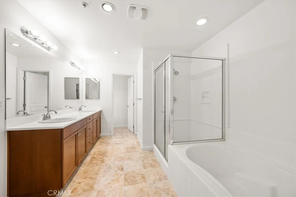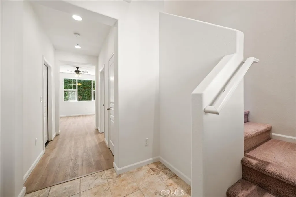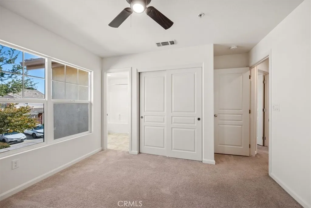 Move-in ready condo, professionally painted, with new laminate wood flooring . This 3-bedroom, 2.5-bath condo, built in 2012, offers 1,683 square feet of living space in the desirable Dove Creek neighborhood. The indoor entry area features space for sitting and storage, and is next to the guest bath with access to the 2-car attached garage. The open floor plan includes a living room with new laminate flooring, a dining area with tile flooring and direct access to the back patio. The spacious kitchen features a dishwasher, gas range, microwave, refrigerator, easy-care engineered stone countertops, and tile flooring. Two large windows flood the living room, dining area, and kitchen with natural light. Level 2 offers 3 bedrooms, 2 full baths, and a laundry room that accommodates a side-by-side washer and dryer. The primary bedroom includes a large walk-in closet, a bathroom with a separate shower, oversized tub, and dual sinks. The 2 additional bedrooms share a Jack and Jill full bath with 2 sinks and a tub with a shower. Dove Creek has two HOA's. One HOA maintains the landscaping of the front yard, the parks, community landscaping, the protected habitat area, the walking path and more. The other HOA maintains the exterior of the home, including the roof. Easy, close-by freeway access, and shopping.
