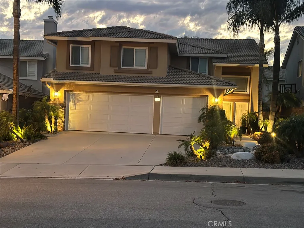 Home Sweet Home is in North Fontana, an excellent neighborhood, and is move-in ready. Downstairs, flooring is tile throughout, with engineered hardwood in the living room and family room, and stairs; upstairs, the entire floor is engineered hardwood (no carpeting). The family room has a fireplace, and the kitchen has been upgraded with solid wood cabinets, granite countertops, an island, and tumbled travertine backsplash. Ample pantry storage with pullout shelves and interior lighting, under-cabinet lighting, and upgraded stainless steel appliances. All bedrooms and the loft/office are located upstairs. All rooms have ceiling fans. The full bathroom at the top of the stairs has a tub/shower combo, dual sinks, and tile flooring. The master bathroom has a separate shower and tub, dual sinks, and a private water closet. The master bedroom has 9 9-foot closet as well as a walk-in closet with built-in organizers. The attached three-car garage has two new garage doors, new garage door openers with backup batteries to meet code, and a Wi-Fi-connected single-car opening with an extra feature: a heavy-duty pull-down screen door. The home has rain gutters and downspouts, as well as new exterior lighting fixtures. Front and back yards have been professionally landscaped for low maintenance, complete with Arizona river rock, drip irrigation system, palm trees, drought-tolerant plantings, artificial turf, landscape lighting on timers, a water feature, a back yard has a concrete patio with a wood lattice patio cover and ceiling fan, a concrete block wall for privacy and safety of childre