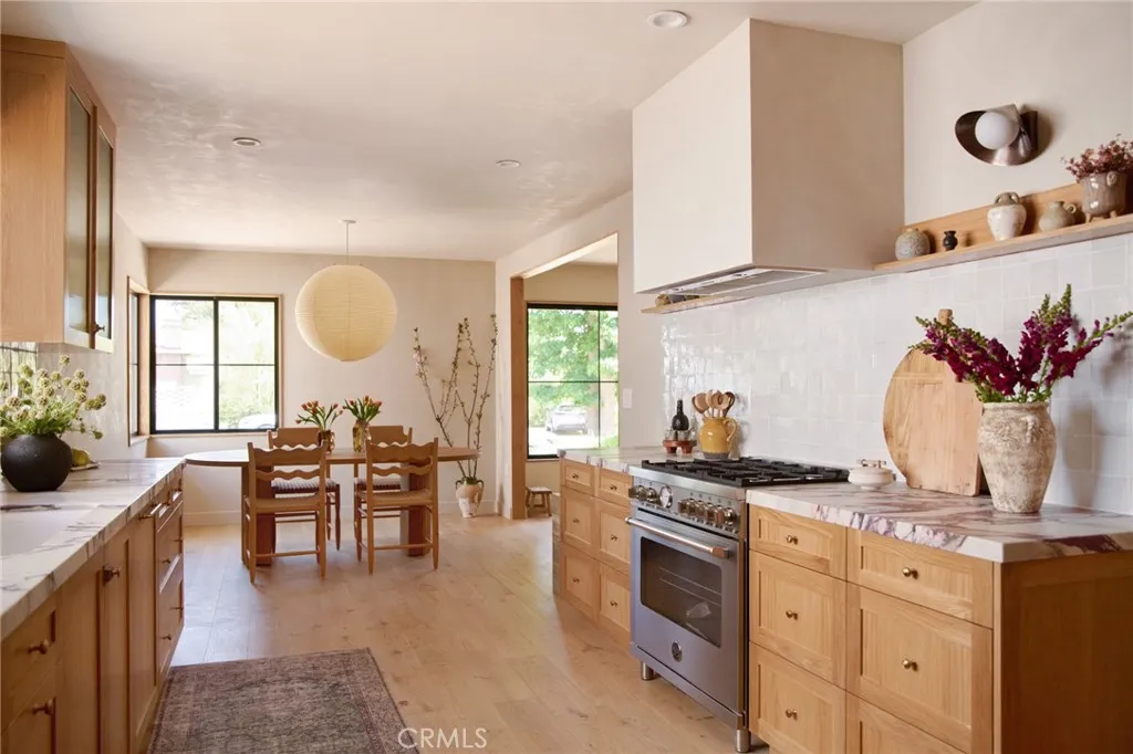 Welcome to The Meadows. Nestled at the end of a peaceful cul-de-sac, this newly renovated residence offers a rare blend of modern comfort, high-end craftsmanship, and natural serenity. With hiking trails just steps away and local parks, markets, and shops minutes from your door, this home is an ideal retreat for families seeking both convenience and connection to nature. Inside, the house has been upgraded for long-term peace of mind, including a new 200-amp electrical panel, a 60-amp garage subpanel, all-new plumbing, HVAC, roof, and energy-efficient windows. The custom white oak kitchen is the heart of the homefeaturing solid white oak cabinetry, Calacatta Viola marble slabs, Italian appliances, and matching oak flooring that brings warmth and timeless beauty to the space. This home was crafted with intention, balance, and comfort in minda rare opportunity to own a truly curated property in one of Altadenas most desirable neighborhoods. Features: Oak engineered flooring throughout Portola paint finishes Pinkys iron front door Marble tile accent details Kitchen: Venetian plaster walls Italian appliances Calacatta Viola marble countertops Moroccan tile backsplash Custom white oak cabinetry Built-in laundry area Bathrooms: Handcrafted Moroccan tile Custom Calacatta Viola marble sink Venetian plaster finishes This isnt just a homeits a lifestyle. Thoughtfully designed, and grounded in nature. Contact your agent for a private showing, or join us at the open house to experience this Altadena retreat in personits even more breathtaking when youre here.