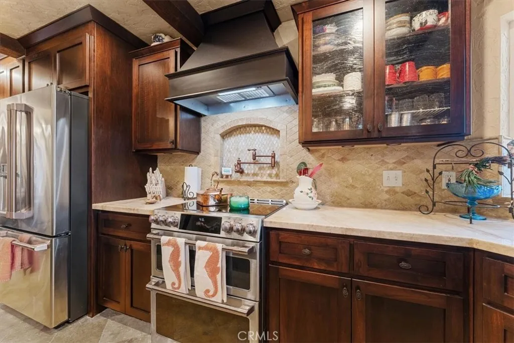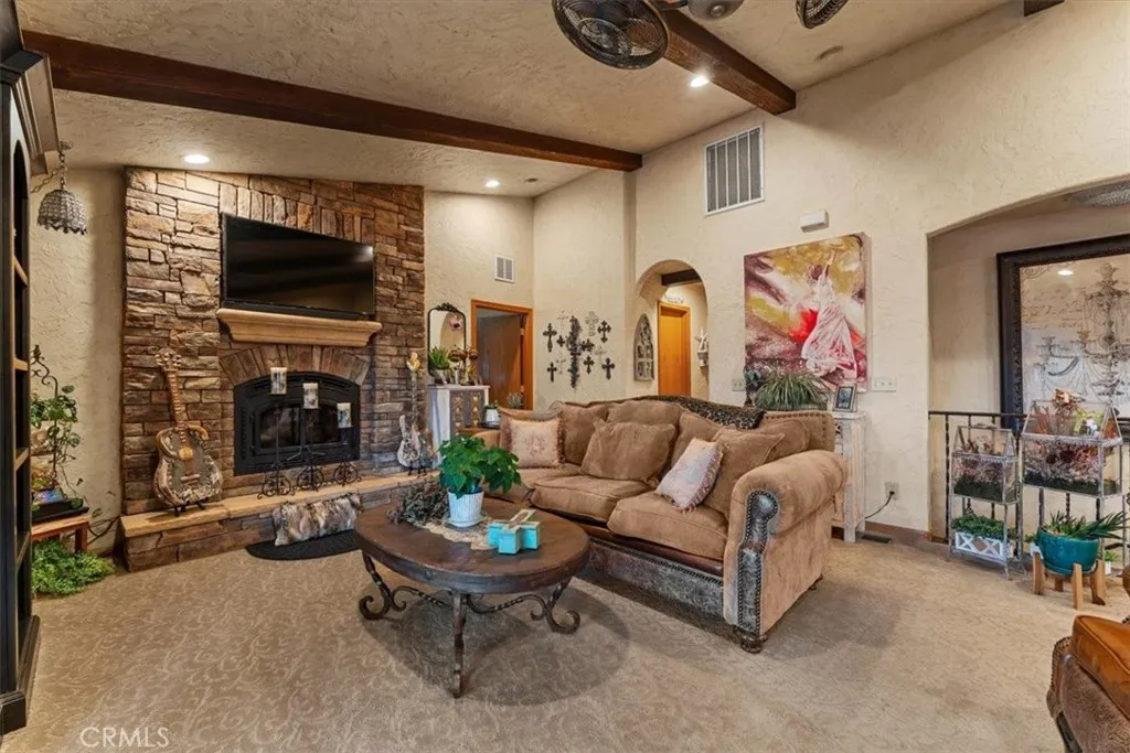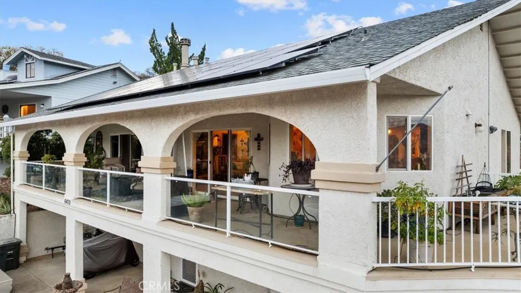 Sweeping Lake Oroville views & thoughtful design throughout. Welcome home to this beautifully crafted 4-bedroom, 2.5-bath retreat overlooking the Foothills and Lake Oroville. Designed for both comfort and entertaining, this home blends stunning views with exceptional finishes and functionality. At the heart of the home is a dream kitchen, featuring a striking onyx inlay island (3.5 x 8) with an induction cooktop, pot filler, Quartzite countertops, travertine tile floors, walnut cabinetry, a large travertine farmhouse sink, wooden beams and stainless steel appliances. The open-concept living room invites you to unwind by the wood-burning fireplace while taking in the incredible lake views that stretch beyond the windows. Step outside onto the spacious covered deck, where you can relax, entertain, or soak in the scenery year-round. Downstairs, youll find two additional bedrooms, a walk around storage space, and a versatile bonus areaperfect for guests, a home office, or a hobby space. Additional highlights include an oversized garage (560 square ft), ample parking, a new 4 ton AC unit, affordable solar, shed, and a low-maintenance yard designed for enjoyment with a hot tub, swim spa and concrete patio area. From sunrise coffee on the deck to evenings under the stars, this home offers the perfect balance of everyday comfort and lakeside tranquility.
