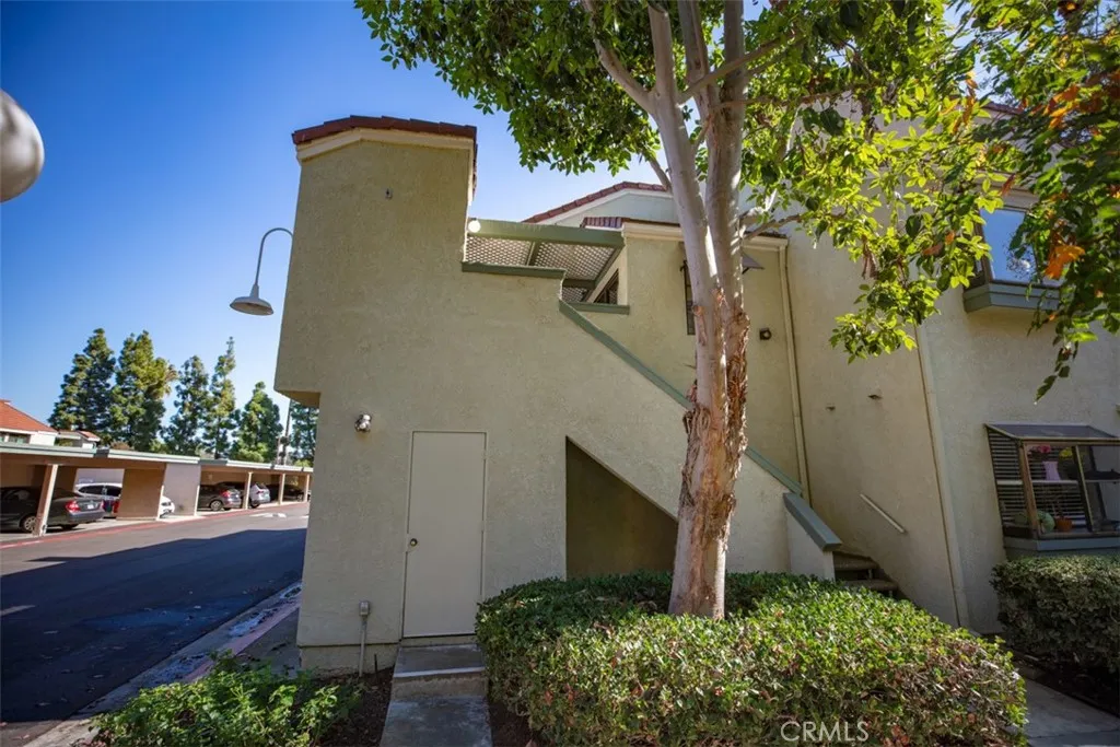 THIS UNIT IS CLEAN TURNKEY, MOVE IN QUICK! Most coveted end-unit in Evergreen Village! Vaulted ceilings, abundant natural light, 2 beds, 2 baths. Cozy gas fireplace, in-unit laundry, built-in closets. Remodeled kitchen with granite counters, new appliances. Spacious private balcony for entertaining: hose bib, outdoor closet, outlets; access from kitchen/living room. 1-car garage + covered carport. THIS ALL INCLUSIVE HOA covers Wter, Trash, Full access of Spectrum cable : Disney plus, Hulu, HBO max, ESPN unlimited, Paramount Plus, Peacock Premium, Fox One pool, jacuzzi, sauna. Miles to beach, near freeways. Bike trails to Huntington Beach, Orangewood views, dog park with designated trail, AND SO MUCH MORE....