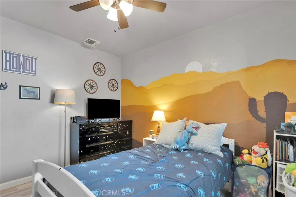 Welcome to this well-kept super clean 3 bedrooms, 2 bathrooms plus an office home that is strategically located close to the I-15 and I40 to travel locally or out of town. Great neighborhood and ready for you to move-in. The beautiful front yard is rocks caped, with low-maintenance enhancing the front porch. As you walk in to the double-door entrance you are greeted by the tile floor entry that opens up to the vaulted-ceiling in the living room, with lots of natural light, and wood laminate flooring and fireplace in the living room that enhances the setting. There is a convenient home office or work from home area with ceiling fan! The window in the living room was replaced by the previous owner that also kept this home so well maintained. The living room opens up to a very spacious kitchen with a door to the two car garage. All of the bedrooms have laminated wood flooring and ceiling fans. This move-in ready home also offers solar panels that will need to be assumed by the new buyer and save on electricity bills while allowing to keep that in the summer. This home also offers a covered patio and is nestled in a 7,200 square feet lot. Commuter friendly , close to local shopping centers , schools and if you want to travel take the 15 north to Las Vegas, the I40 east to Arizona, the 15 south to all cities down bellow all the way to orange county, or west via the 58 to Palmdale or Lancaster or northern CA.