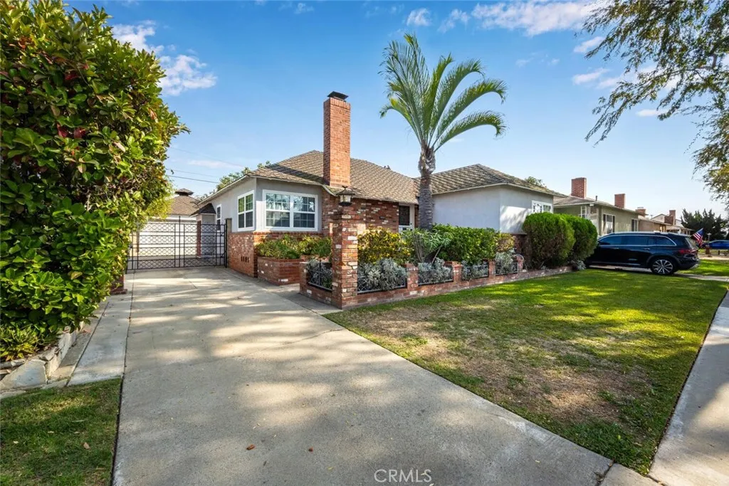 Welcome to this 3 bedroom, 1.5 bath home located in the desirable Lakewood Gardens neighborhood on a beautiful tree-lined street. This home retains its original character with oak hardwood floors and a gas fireplace in the living room, while also featuring several recent updates including fresh interior paint, recessed lighting, dual pane vinyl windows, separate laundry room and an extended primary bedroom. The kitchen offers abundant cabinet space, dishwasher, gas range and an open bar to the living room. The main bathroom includes both a shower stall and a separate tub. The home is also equipped with a Moen leak detection device with real-time smart technology, required by most insurance companies. Step outside to the covered backyard patio, mature avocado and orange trees, and landscaped grounds, offering a comfortable setting for outdoor dining or gatherings. The long gated driveway provides ample parking, including the potential for boat or RV storage. The detached garage includes an extended workshop space for hobbies or storage, along with an additional backyard shed. Other notable features include a 50-year composition roof and automatic garage door opener. The home also has an additional half bath area that was added by the previous owner and may not be permitted. This property has been thoughtfully refreshed and offers livability, flexibility, and room to make it your own in a highly sought-after neighborhood. Situated less than a mile from the newly opened Odyssey STEM Academy, this home provides easy access to local amenities, parks and shopping. Lakewood Garden