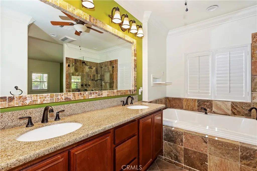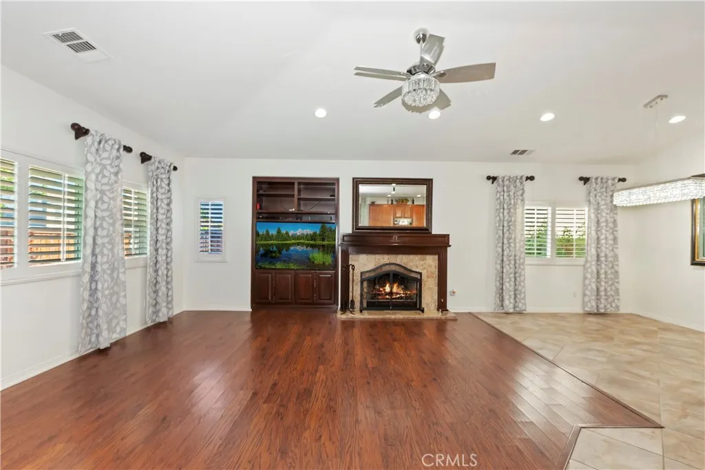 Beautifully Upgraded Turnkey Home on a Quiet Cul-de-Sac in Menlo Estates, Hemet! This stunning single-story home offers 4 bedrooms and 3 bathrooms, thoughtfully upgraded throughout. Enjoy hardwood and tile flooring, recessed lighting, crown molding, plantation shutters and energy-efficient windows. A double-door formal entry welcomes you into the spacious, open layout. The private, gated front yard includes a charming porchperfect for relaxing outdoors. RV parking with custom gates and a large driveway provide plenty of space for vehicles and toys. The entertainers backyard is a true highlight, featuring a sparkling saltwater pool and spa, a full wrap-around covered patio with stamped concrete, a mounted TV (included), and a BBQ island with a stainless steel refrigerator and 4-burner grill. Inside, the living room offers a cozy fireplace, built-in entertainment cabinetry, and a mounted TV (included). The kitchen boasts a large center island with bar seating, a spacious pantry, stainless steel appliances and an open-concept design ideal for gatherings. The primary suite offers a large walk-in closet, soaking tub, walk-in shower, and dual sinkswith a mounted TV included. The front bedroom has been converted into a home office but can easily be restored to a bedroom if desired. Additional features include a large laundry/utility room, a two-car garage with pull-down ladder and attic storage, soft water system, tankless water heater and no HOA. Schedule your private tour of this beautiful Menlo Estates home today!