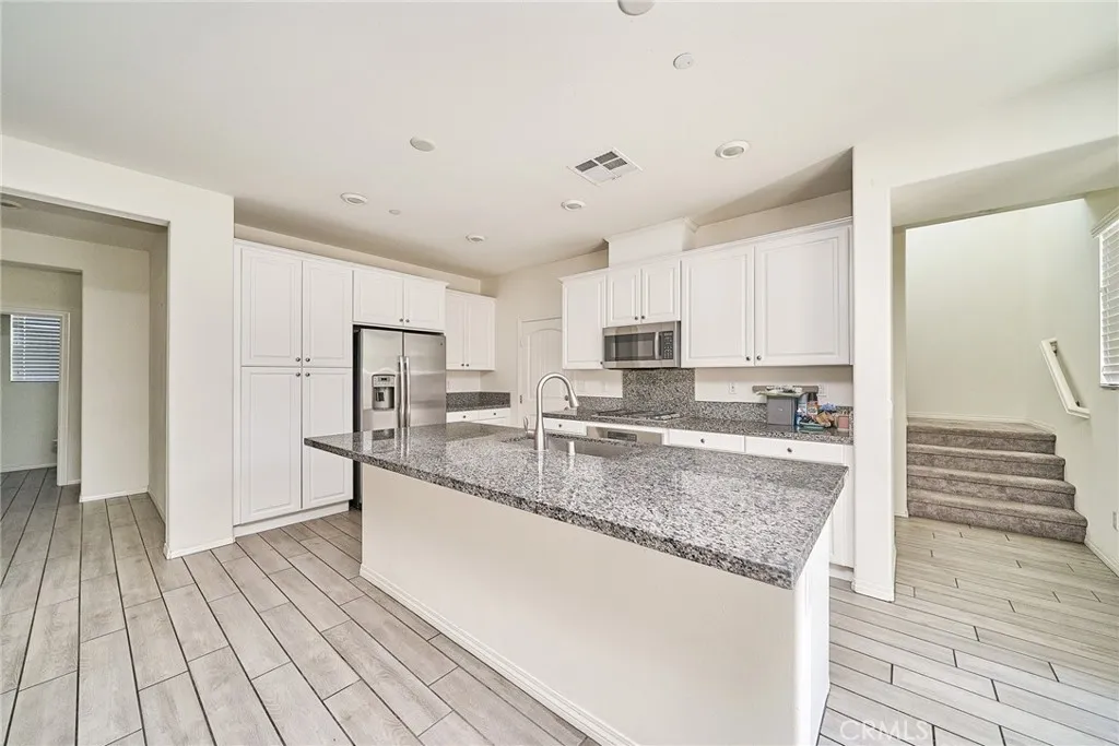 Welcome to this beautifully maintained home located in the desirable community of The Preserve at Chino. This spacious residence features 4 bedrooms and 3 bathrooms, offering approximately 2,079 square feet of bright, open living space designed for modern lifestyles. The gourmet kitchen includes a large center island, stainless steel appliances, quartz countertops, and abundant cabinet storage. The inviting living and dining areas create a perfect setting for both everyday living and entertaining. The primary suite boasts a generous walk-in closet and suite bathroom with dual vanities and a relaxing soaking tub. A versatile main-level bedroom and full bath provide flexibility for guests or a home office. Enjoy a private patio perfect for outdoor dining or peaceful evenings. Additional highlights include an attached two-car garage and convenient upstairs laundry. Conveniently located near schools, shopping, and major freeways, this home offers the perfect combination of comfort, style, and convenience.