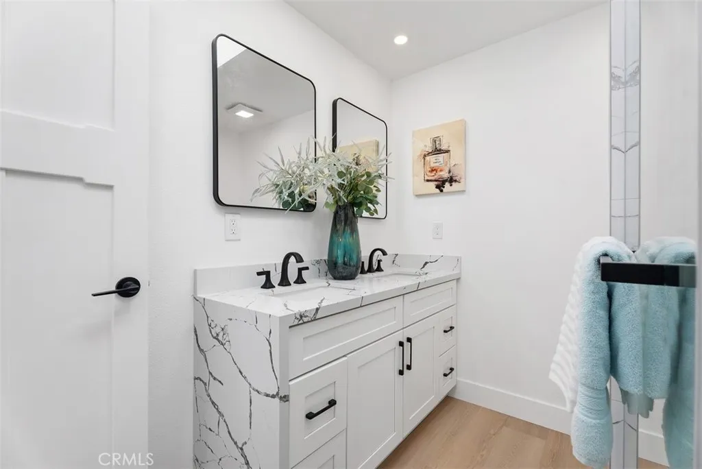 Spectacularly remodeled single-level home on a quiet single-loaded cul-de-sac offers breathtaking mountain and city light views and is completely move-in ready! From the moment you enter through the gated courtyard, youll appreciate the quality and attention to detail throughout this beautiful home. The light and bright kitchen features new Quartz counters, new soft-close wood cabinets, new stainless steel appliances, and a spacious waterfall island with cooktop, microwave and bar seating. The adjacent dining area flows seamlessly into the great room with wood beam ceilings, recessed lighting, and a cozy fireplace. The primary suite offers a private patio and a gorgeous remodeled bathroom with Quartz counters, dual sinks and a walk-in shower. Each secondary bedroom has its own fully remodeled bathroom and views of the lush backyard. Indoor laundry room includes brand new washer and dryer and home has direct access to the 2 car garage. Additional upgrades include new COREtec luxury vinyl plank flooring, new windows, new solid wood doors, fresh paint, new AC, and a new tankless water heater. The expansive 7,155 sq ft lot provides exceptional privacy, a lush grassy lawn, two patio areas, and sweeping panoramic views. Located within walking distance to the community pool, pickleball courts, volleyball, basketball, and playground. Just minutes to the beach and harbor, close to excellent schools, and low tax rate this is the perfect place to call home!