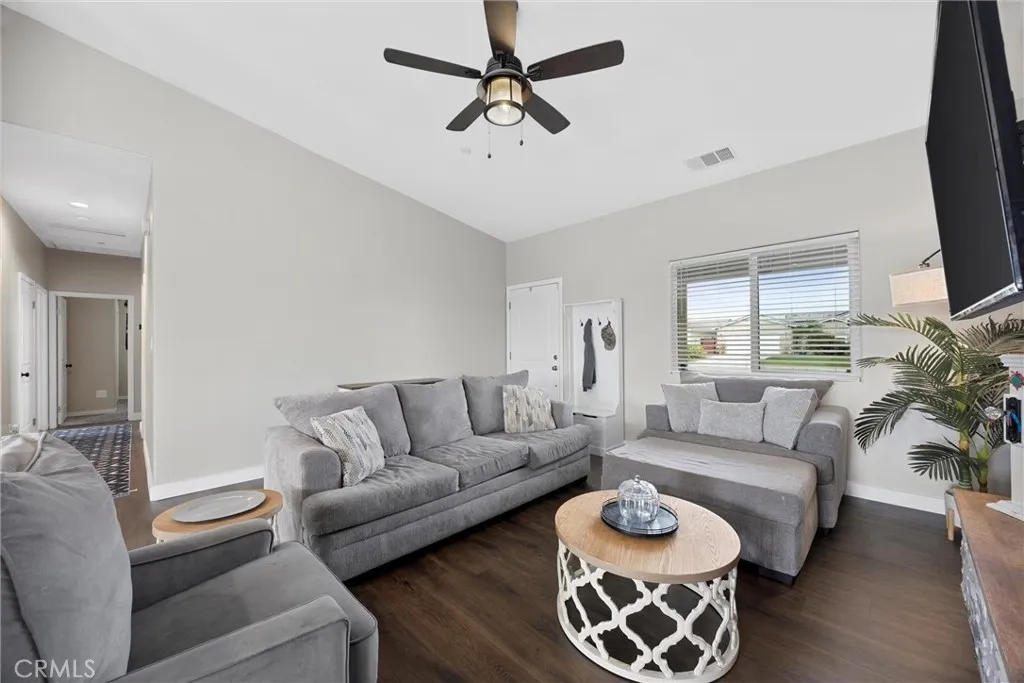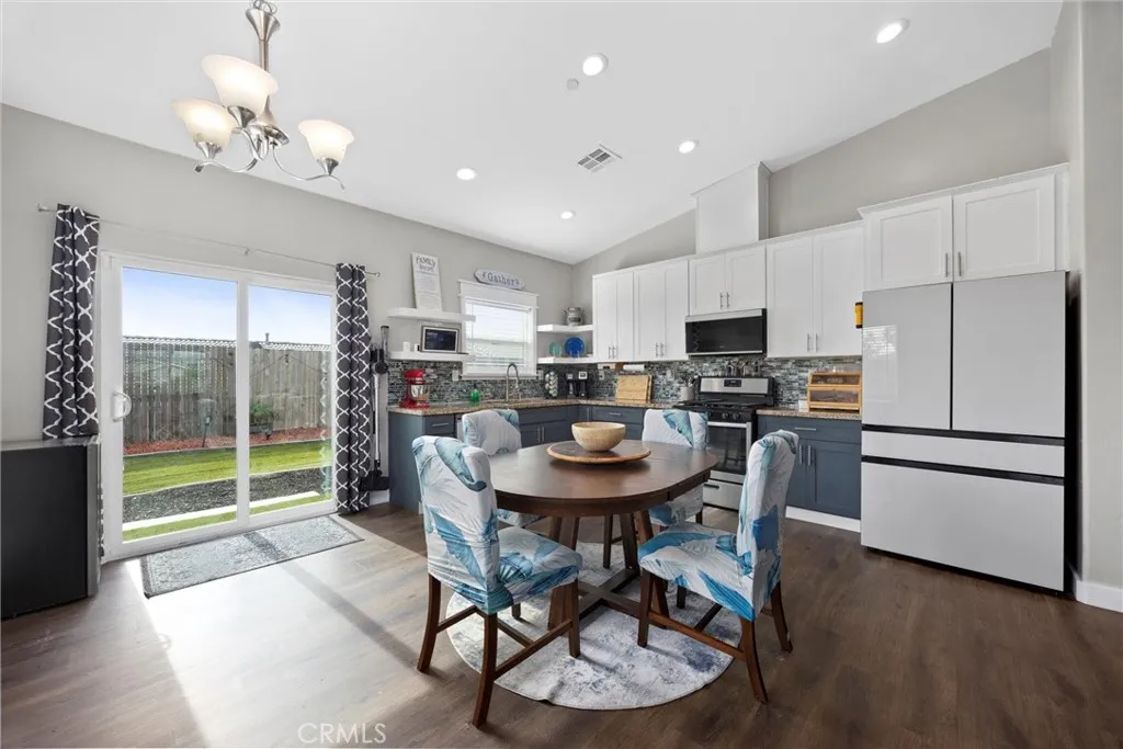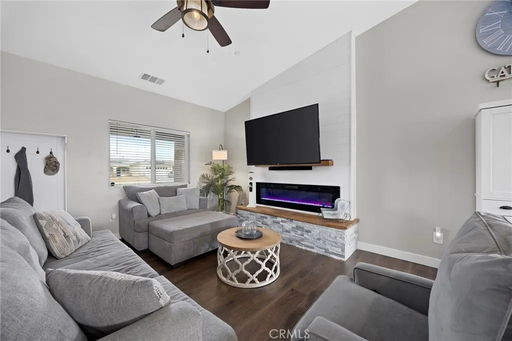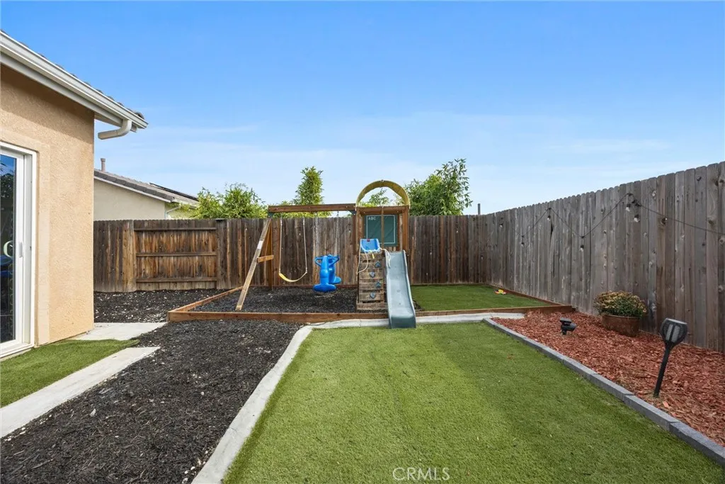 Welcome to 9907 Turning Leaf Ln in Bakersfield, a beautiful 4-bedroom, 2-bath home that blends modern updates with everyday functionality. Recently repainted inside and out, this home features leased Tesla (SolarCity) solar panels, a fully fenced backyard with drought-efficient faux grass, and a refreshed front yard with an expanded driveway. The open kitchen offers stainless steel appliances including the refrigerator and gas stove, modern lighting, and electrical already in place for a future island. Both bathrooms include high-efficiency toilets, updated fixtures, and a shower and tub combination in the primary suite with a closet conveniently located just off the bathroom. Additional features include smart switches compatible with Alexa, updated lighting throughout, an electric fireplace, and a laundry room (W/D included) that leads directly to the two-car garage with built-in shelving and extra storage. The side yard offers approximately 13 feet of space, providing potential for RV or truck parking. Located in a quiet, established neighborhood close to parks and schools, this home combines comfort, efficiency, and style in one inviting package.