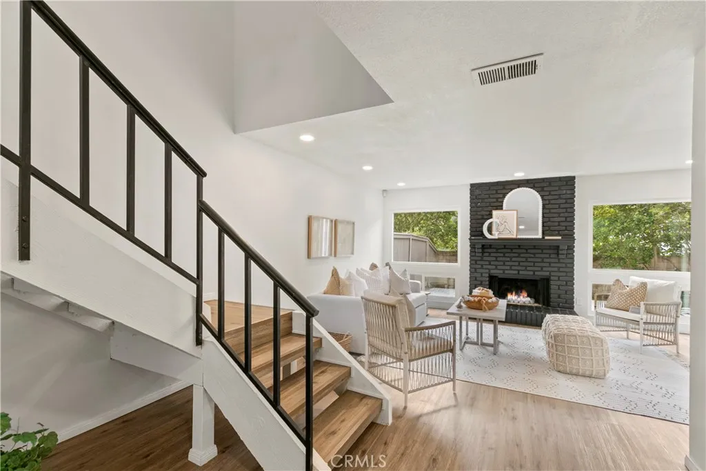 Sun-soaked ceilings, clean lines, and a floor plan that actually flows this 3 bed, 2.5 bath townhome checks all the boxes (and then some). The beautifully updated interior features new flooring throughout, keeping things modern and low-maintenance. The living room pulls you in with its cozy fireplace and expansive windows fill the home with warm, natural light. The newly remodeled kitchen brings both form and function, granite countertops, a deep farmhouse sink, ample storage, and a breakfast bar setup made for slow mornings or spontaneous wine nights. Dont miss the built-in wine bar with wine fridge perfect for entertaining. Upstairs, youll find three generously sized bedrooms, including a primary suite that feels like a private retreat vaulted ceilings, tons of closet space, and a large en-suite bathroom. Enjoy a large enclosed patio ideal for morning coffee or relaxing evenings, plus the home has direct access to an attached two-car garage. The community includes a pool, spa, and well-maintained grounds all within minutes of Old Towne Orange, Chapman University, restaurants, shopping, and freeway access. A rare opportunity to own in one of Oranges most desirable communities.