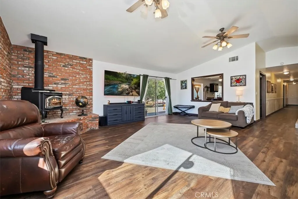 Welcome to this stunning ranch-style home, perfectly situated on a sprawling 98,010 sq ft lot with breathtaking desert mountain views. This spacious 4-bedroom, 2-bath property offers 2,388 sq ft of open living space, featuring beautiful laminate flooring throughout. The modern kitchen boasts quartz countertops, a chic herringbone tiled backsplash, a Puragain whole-house water filtration system, and stainless steel appliancesideal for gatherings and culinary creations. The inviting family room includes a cozy wood-burning stove, perfect for relaxing evenings. The large main bedroom offers plenty of space and an attached spa-like bathroom with a separate soaking tub, tiled shower, and dual vanity, creating a luxurious retreat. The three-car garage has been transformed into a versatile mancave, providing plenty of space for hobbies or entertainment. The expansive driveway can comfortably accommodate multiple RVs, boats, or off-road toys, with direct access to dirt paths for outdoor adventures. Enjoy ample room to add a pool, an ADU, or customized upgrades. The desert landscape creates a picturesque backdrop, offering tranquility and stunning mountain vistas. Don't miss your chance to own this exceptional propertyschedule a visit and make this home yours today!
