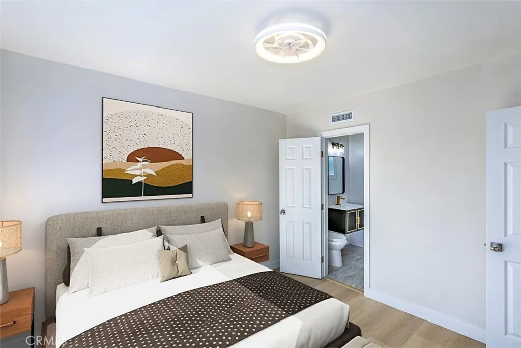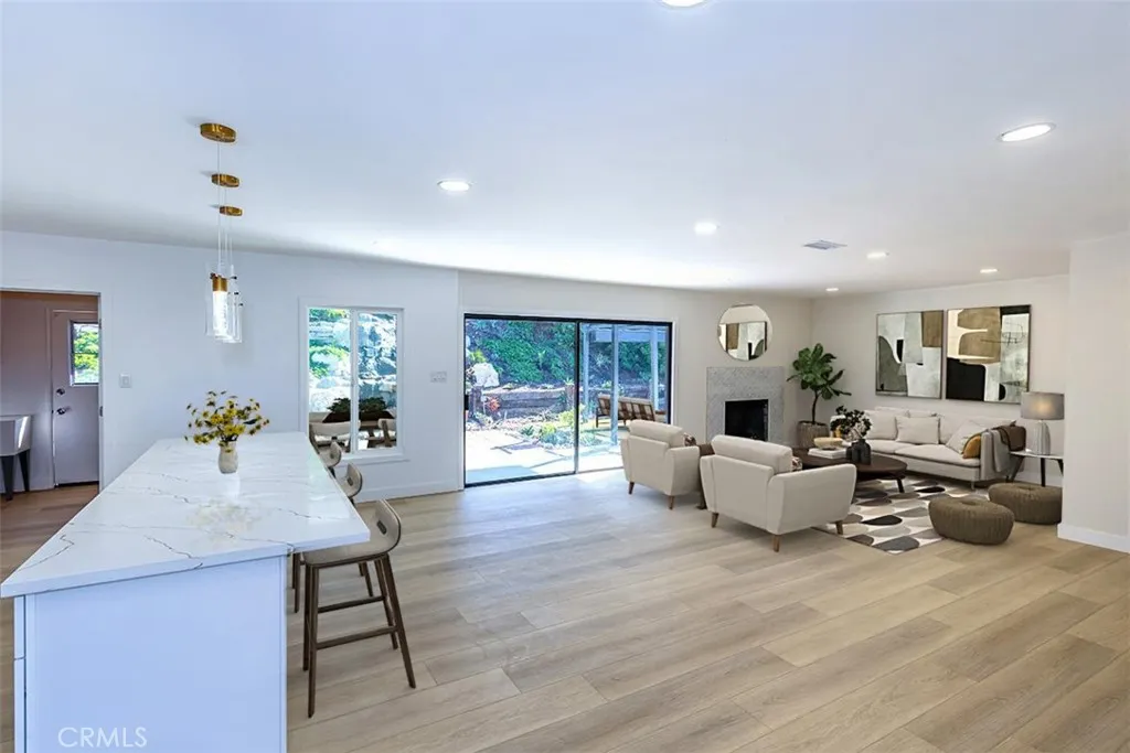 ** SATURDAY 11/15 OPEN HOUSE CANCELLED** Beautifully remodeled La Mirada park home! This stunning residence welcomes you with a completely open floor plan that blends style and functionality. The spacious kitchen is the centerpiece of the home, featuring brand-new shaker cabinets, elegant quartz countertops, stainless steel appliances, and a large island that opens to the living room and offers a perfect view of the tranquil backyard waterfall. Adjacent to the kitchen is a generous laundry room with additional storage and a convenient laundry sink. The inviting living room showcases a beautifully tiled fireplace, recessed lighting, and a seamless layout that flows effortlessly throughout the home. New luxury vinyl plank flooring runs from room to room, enhancing both beauty and durability. Both bathrooms have been tastefully updated with custom tile, modern vanities, and stylish fixtures. Dual-pane windows and a new central heating and air system provide comfort and energy efficiency all year long. Step outside to your own private oasis where a stunning custom rock waterfall creates a peaceful ambiance. The backyard also features a spacious open patio, a brand-new gazebo, and freshly installed turf, making it the ideal space for entertaining or simply relaxing. This La Mirada gem combines modern upgrades, comfort, and a resort-like outdoor retreat. Located near the award winning La Mirada Golf Course and within easy walking distance to La Mirada Reginal Park featuring Splash Water Park, Fishing Lake & Frisbie Golf, Aquatic Center, Community Gym, Library, Athletic Fields & B