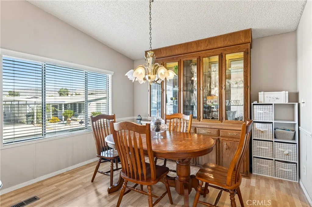 Welcome to Heather Estates, one of Hemets most desirable 55+ gated communities, offering upscale and active senior living. This gorgeous triple-wide manufactured home is situated on a large cul-de-sac lot with a peaceful greenbelt setting, mature fruit trees, a shaded sitting area, and no neighbors on the east side - providing rare privacy and tranquility. Enjoy morning coffee on the covered front porch and unwind in the spacious vaulted-ceiling living room filled with natural light. The beautifully updated kitchen features quartz countertops, subway tile backsplash, a deep stainless-steel sink, and new fixtures, flowing seamlessly into the dining and family areas. The primary suite includes a dual-sink vanity, a soaking tub, and a separate shower. Additional upgrades include:new 200-amp electrical panel with EV charging station, new swamp cooler installed (11/1/25), fresh interior paint, new blinds in family and dining room, updated sinks and faucets throughout, drip irrigation system, annual HVAC service completed, new laundry sink faucet. The property also includes a generous 8x22 storage shed. Heather Estates offers exceptional community amenities: clubhouse with pool and spa, library, gym, banquet hall with full kitchen, tv room, indoor shuffleboard, billiards, ping-pong, pickleball, and a private lake and greenbelt walking loop. Trash, water, and gate maintenance included. This is refined, comfortable living designed for the active retiree. Dont miss this one.