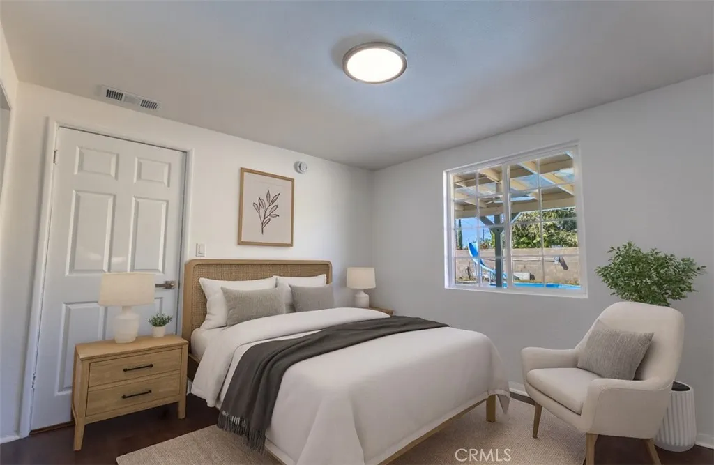 Welcome to this beautifully refreshed single-story Riverside home featuring 3 bedrooms and 2 bathrooms on a spacious 7,405 sq. ft. lot with a sparkling pool! Step inside to discover a bright, inviting interior illuminated by new recessed LED lighting that highlights the homes freshly painted Whipped Cream white wallscreating a modern and elegant feel throughout. The kitchen comes fully equipped with all included appliances: refrigerator, gas range, and microwaveperfect for moving right in. The bathrooms have been tastefully remodeled, showcasing brand-new vanities, updated plumbing and electrical fixtures, and stylish tile finishes. The primary suite features its own private bathroom with a separate toilet area, offering extra comfort and convenience. Outside, enjoy your own backyard retreat with a recently refinished, shiny-blue pool thats ready for summer gatherings. The spacious yard offers plenty of room for entertaining, barbecues, or relaxing weekends by the pool. An additional fenced side area provides a secure space for pets or a private garden setup. This home also features a brand-new roof, central heating and cooling, and fresh exterior and interior paint, ensuring peace of mind for years to come. Located near shopping, dining, and schools within the Alvord Unified School District, this move-in-ready home perfectly balances comfort, style, and convenience.