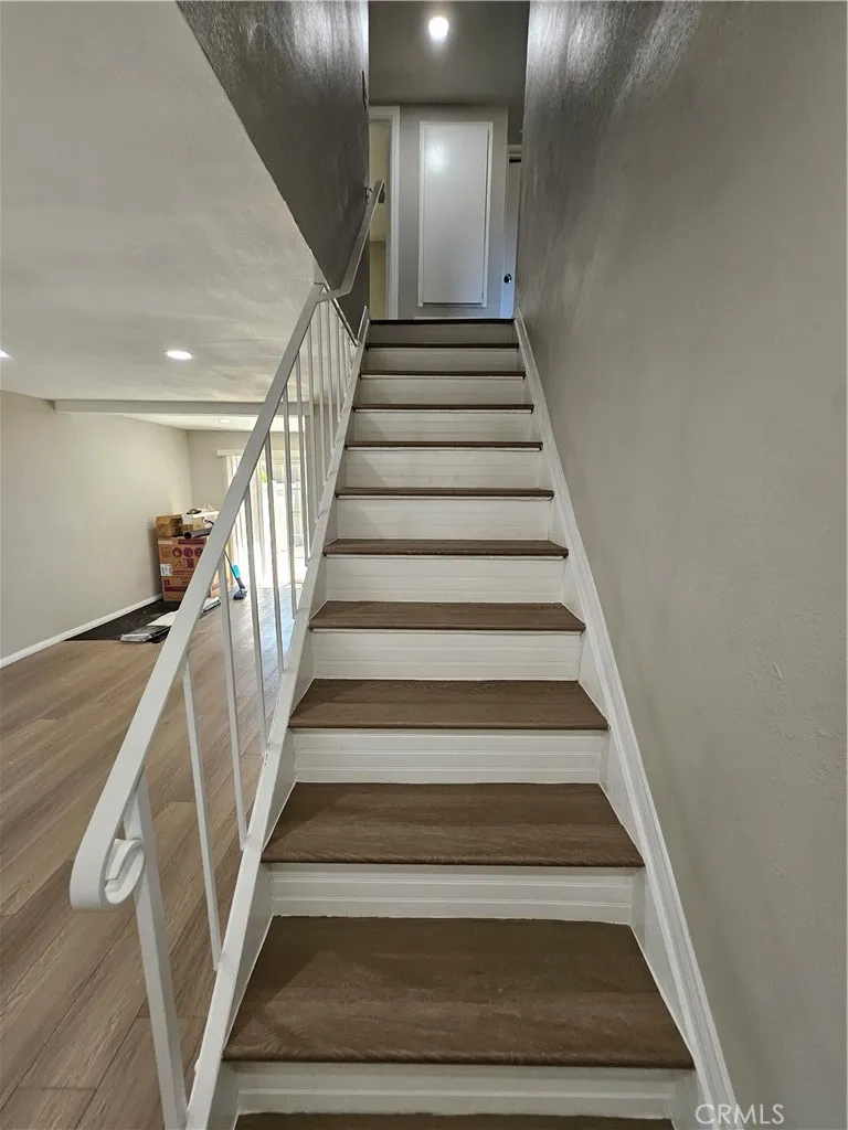 This lovely 2 story Riverside townhome is approximately 1200 square feet and includes 4 bedrooms and 2 bathrooms.On the first floor level there is1 bedroom and 1 bathroom(shower only). On the second floor you will find 3 additional bedrooms and 1 full bath (tub & shower). The unit also includes an additional upstairs room dedicated for laundry. Tenant has the option to install a washer and dryer. This upgraded unit comes with central air and heating, all new vinyl floors, and recess lighting throughout the unit. The modern upgrades in the kitchen include quartz countertops, a new stainless steel dishwasher and gas range. (No refrigerator). New bathroom vanities installed.The unit faces the community pool and the outdoor patio (in the rear)is an open canvas. Just outside the patio are two dedicated parking spaces for your vehicles and some additional storage space under the carport.This home is perfect for the person who wants the convenience of living in a gated community. The Springbrook Park Townhome community is conveniently located near the Columbia Street exit off the 215 fwy and within 3 miles north of downtown Riverside.