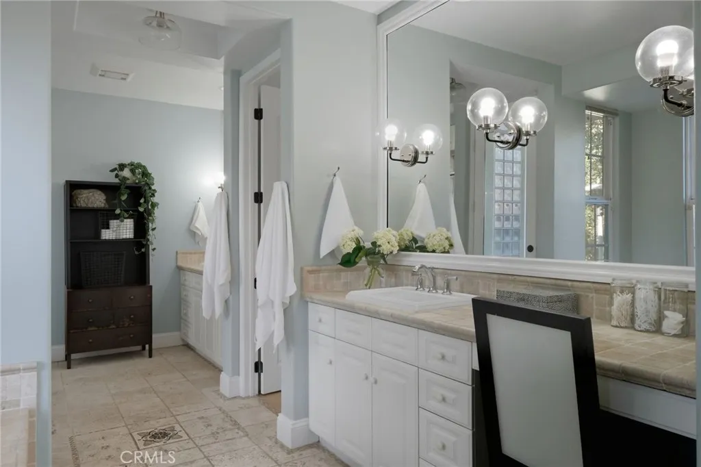 Nestled behind the quiet gates of Bella Lago, this stunning former model home embodies effortless California coastal living where style meets comfort. Set at the end of a peaceful cul de sac, this two story home lives like a one story, with all main living spaces on the entry level. Inside, the open floor plan welcomes you with high ceilings, walls of windows, and Richard Marshall hardwood floors that fill the home with warmth and natural light. An elegant curved wrought iron staircase leads to a circular loft and private retreat, adding architectural beauty and character. The chefs kitchen blends a cool California vibe with restaurant inspired design. Outfitted with Viking appliances, quartz countertops, open shelving, and a spacious island, the space feels both elevated and inviting. It flows effortlessly into the family room with beamed ceilings and a cozy fireplace, making it perfect for cooking, gathering, and entertaining. Upstairs, a private retreat offers a sitting area and wine closet, plus a hidden loft behind a bookcase with a spiral staircase leading down to the primary suite, an unexpected architectural touch and the perfect bonus space for work or relaxation. The primary suite itself offers direct patio access and a serene, private escape. The outdoors is truly a retreat, private, lush, and designed for living well. Enjoy lazy afternoons by the sparkling pool, unwind in the spa beneath the stars, or gather around the fireplace for cozy evenings with friends. With cascading waterfalls, a built in BBQ, and a putting green, every inch of this backyard was made fo