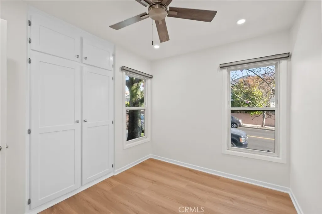 Newly remodeled 2-bedroom, 1-bathroom condo located in the heart of Burbank! This first-floor unit offers approximately 800 sq. ft. of modern living space featuring recessed lighting, fresh white paint, and beautiful wood-style flooring throughout. The updated kitchen showcases white cabinetry, stainless steel appliances, and sleek countertops. The bathroom features a clean, spa-inspired design with a white tile shower-over-tub. Enjoy added comfort with ceiling fans, window coverings, and a private backyard patio with paved space and lush greenery, perfect for relaxing or entertaining. Conveniently located within walking distance to Burbank High School, shopping, and dining. Includes one carport parking space.