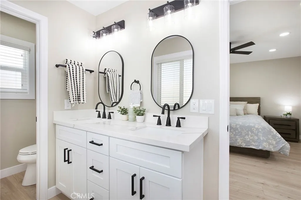 Gated- Brand New Construction Inside - Detached Single Family Home! This 3 bed 2.5 bath has a 2 car attached garage with direct house access. Upstairs laundry with washer and gas dryer hookups. The primary suite has double sinks, walk in shower with seat and extra large walk in closet. Luxury vinyl and tile thru out, all new shaker style cabinets with hardware, quartz countertops and stainless steel high end appliances. Central heating and air and all new windows. Back yard has block and white vinyl fencing. Unit is located in one of Breas most desirable school districts. You are just a short walk to Downtown Brea, the Brea Mall, shopping, dining, entertainment and conveniently located near the 57 Freeway. This home offers easy access to everything you need while maintaining a peaceful residential feel.
