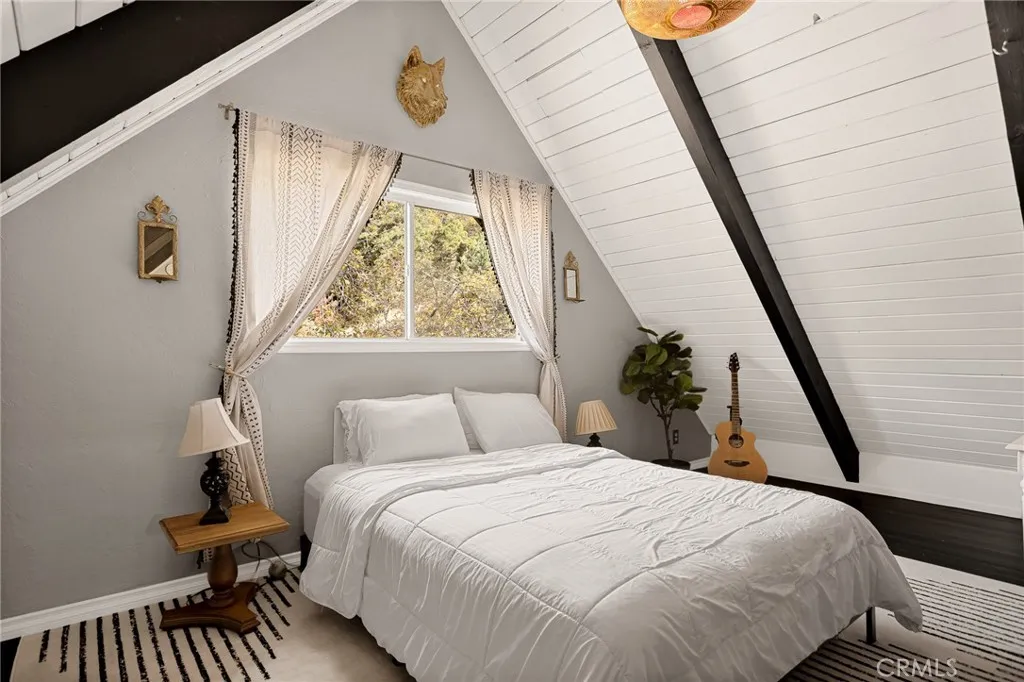 For those drawn to homes with character, story, and magic - The Crescent Manor awaits its next keeper. High on a quiet Crestline ridge where fog drapes the pines, the manor sits perched on a hill with a calm presence, feeling as if it were carved directly from the mountains spirit. A convenient level entry leads into this historic cabin, spanning 1,800 sqft, with 4 bedrooms and 3 baths. This is a sanctuary for artists, writers, and musicians seeking quiet, inspiration, and healing. Over the years, creative souls have fled to this home to escape the noise and pressures of city life. The current owner restored the home lovingly with the intention to curate a space that fosters creativity and a connection to ones highest purpose. Inside, each room has a distinct energy. Upstairs youll find two A-frame bedrooms with an updated bathroom. On the main floor is an office or fourth bedroom with its own private bathroom that has an incredible tub and a mature walnut tree just outside the window. The primary suite on the lower level offers space for a king bed and features a private en-suite bathroom complete with a two-person shower, and built-in vanity. Epic views of Crestline can be found on the back deck where theres a built-in outdoor bed for stargazing and moon worship. In the backyard youll find a 300 sqft insulated workshop with power; designed to be your personal sanctuary for creation. It is a quiet space where ideas take shape in solitude and the presence of past creatives still lingers. Though wrapped in serenity, the location delivers practical ease: walking distance to t