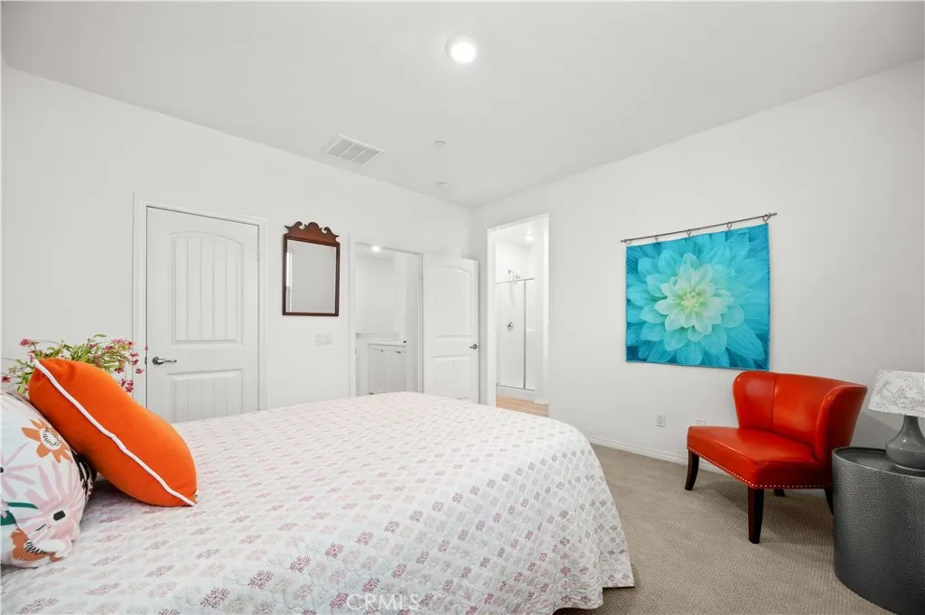 This turn-key Lennar home in the Gabion Ranch community of Fontana presents an ideal opportunity for your buyers and is priced to sell quickly. The residence features a bright, open living area with laminate flooring and Berber carpet. The spacious kitchen is equipped with stainless steel appliances, quartz countertops, and ample counter space and shelving. The expansive primary suite includes an extra-spacious bathroom. Throughout the home, all closets, have built-in's including the primary suite's, have been updated with modern shelving for optimal organization. Convenience is further enhanced by a spacious upstairs laundry room, which also includes shelving. The home boasts several recent updates, including a tankless water heater, solar power, and newer plumbing. Additionally, it offers privacy while providing easy access to community amenities such as 3 swimming pools, BBQ area, and dog park.This property is move-in ready.