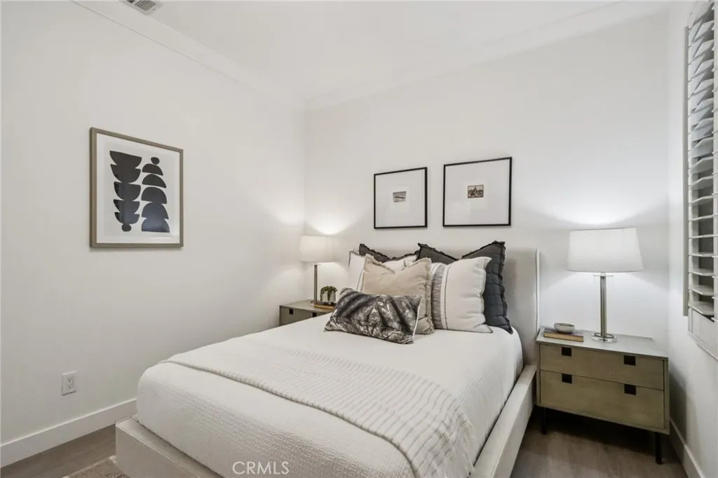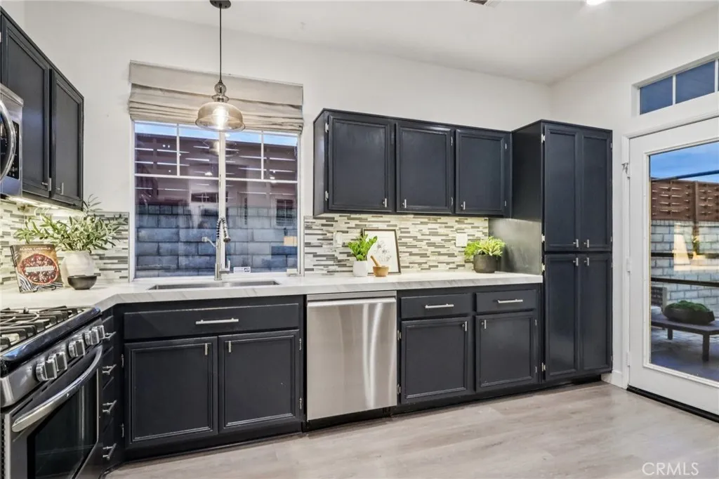 Welcome to this beautifully upgraded two story home that blends modern luxury with effortless California living. Situated on a generous lot with direct two-car garage access, the home showcases the results of a $150,000 remodel completed within the last three years. Inside, luxury vinyl flooring, fresh designer paint, crown molding, baseboards, and recessed LED lighting create a clean, contemporary look. Striking chandeliers highlight the dining area and stairwell, while modern fixtures add warmth throughout. The fully remodeled kitchen features Neolith soft-touch countertops, a designer backsplash, custom-stained cabinetry with LED lighting, upgraded hardware, an oversized stainless sink, high-end appliances, a breakfast bar, and a built-in bar accented with decorative tile. Updated bathrooms include contemporary vanities with soft close drawers, upgraded mirrors and fixtures, and stylish tile work. The primary suite offers two spacious closets with barn doors, dimmable lighting, and a stunning en suite with dual sinks, an expansive glass shower with dual heads and rain feature, a built-in bench, and a makeup station with illuminated mirror and Bluetooth speaker. The private backyard is an entertainers dream with a covered patio, bistro lighting, mounted TV, stained concrete dining areas, raised flower beds with sprinklers, artificial turf, a three-hole putting green, wood decking, and pavers. A charming front lawn enhances curb appeal. Additional comforts include central air and heat with Nest thermostat, plantation shutters, tall ceilings, a gas fireplace, upstairs laund