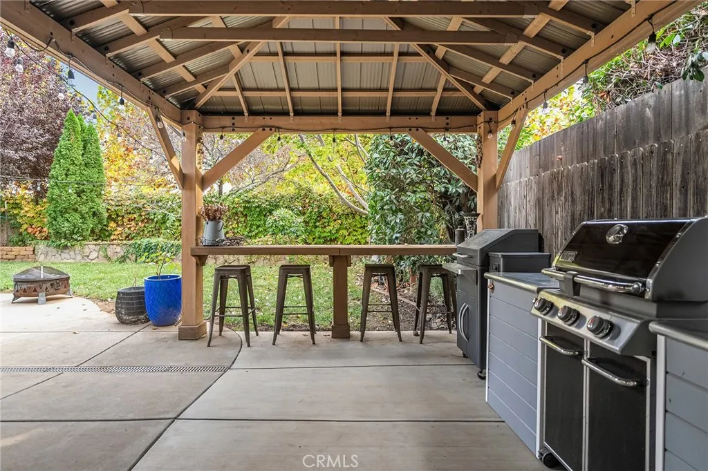 Located in the highly coveted Hancock Park neighborhood and just minutes from both Hancock Park and Wildwood Park, this home offers unmatched access to miles of scenic trails and the natural beauty of Upper Bidwell Park. With great schools and shopping nearby, the location perfectly blends outdoor recreation with everyday convenience. A standout feature is the 3-car garage, with one bay ideal for use as a workshop. The property also includes RV parking with a pull-through gate and built-in lawn load support for easy access and storage. Inside, youll find updated modern appliances, an open kitchen flowing seamlessly into the dining and living areas, and a cozy gas fireplace that anchors the space. A QuietCool whole-house fan enhances comfort and energy efficiency throughout the warmer months. The primary suite continues the beautiful LVP flooring from the main living areas and offers a tiled walk-in shower and a stylish barn door for privacy. The expansive backyard is built for relaxation and entertaining, featuring a large lawn, mature shade trees, a covered patio, an outdoor kitchen area, and a 220 hookup ready for a hot tub beneath the covered pergola.