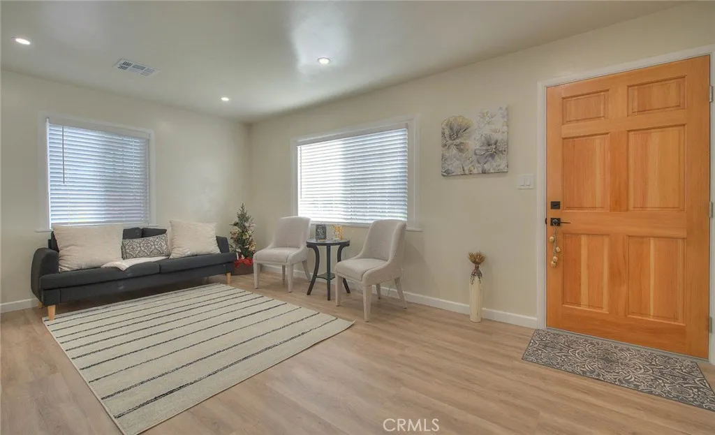 Discover this beautifully renovated 2 bedroom, 1 bathroom home, centrally located and thoughtfully upgraded throughout to offer modern comfort and effortless living. Step inside to an inviting open layout featuring brand-new flooring, fresh interior and exterior paint, and new recessed lighting that fills the home with warmth and brightness. The fully remodeled kitchen boasts new cabinets, updated backsplash tile, a new under-mount sink with stylish fixtures, Quartz countertops, a new garbage disposal, and a complete set of new appliances including a range, hood vent, dishwasher, and refrigerator. The bathroom has been tastefully updated with an upgraded walk-in shower, new vanities, new fixtures, and new toilets. The home also includes a convenient designated indoor laundry area with washer and dryer hookups, a wall-to-wall master bedroom closet, solid wood floating shelving, and an additional unpermitted half bathroom for extra convenience. Major system upgrades include new central air conditioning and heating, updated plumbing, updated electrical, a new water softener system, and an upgraded water heater. NOW FHA eligible!!!!!! Outside, the property is fully enclosed with wood fencing and highlighted by upgraded exterior lighting, creating an inviting and private outdoor space. With meticulous renovations from top to bottom and a location close to everything, this move-in-ready home is the perfect blend of style, comfort, and convenience.