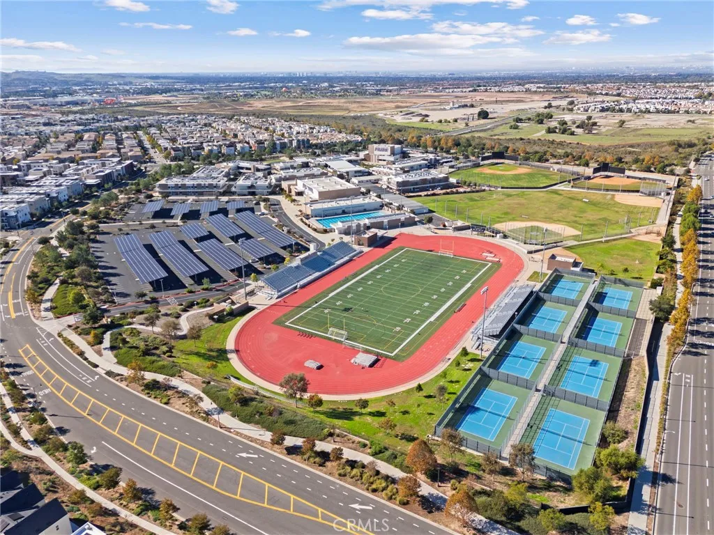 An excellent opportunity for you to own a Lennar built Mulberry multi-level condo in the Great Park Neighborhood. This unit feature paid off solar system. Unique floorplan with main level flex space. Good size living room with balcony view of the streetlight. Beautiful kitchen with plenty of cabinet spaces and spacious island. Two master bedrooms with private baths and walk-in closets. One of the bedrooms with private balcony overlooking sunset view. Central Air & Heat. Direct access from garage. Unit is currently zone in the Irvine Unified School District. Residents in the Great Park Neighborhood will have access of the recreational facilities including multiple pools, clubhouses, fitness centers, tennis courts, basketball courts, parks, BBQ and picnic area in the Great Park Neighborhood. Unit is conveniently close to schools, shopping center, restaurants and freeways