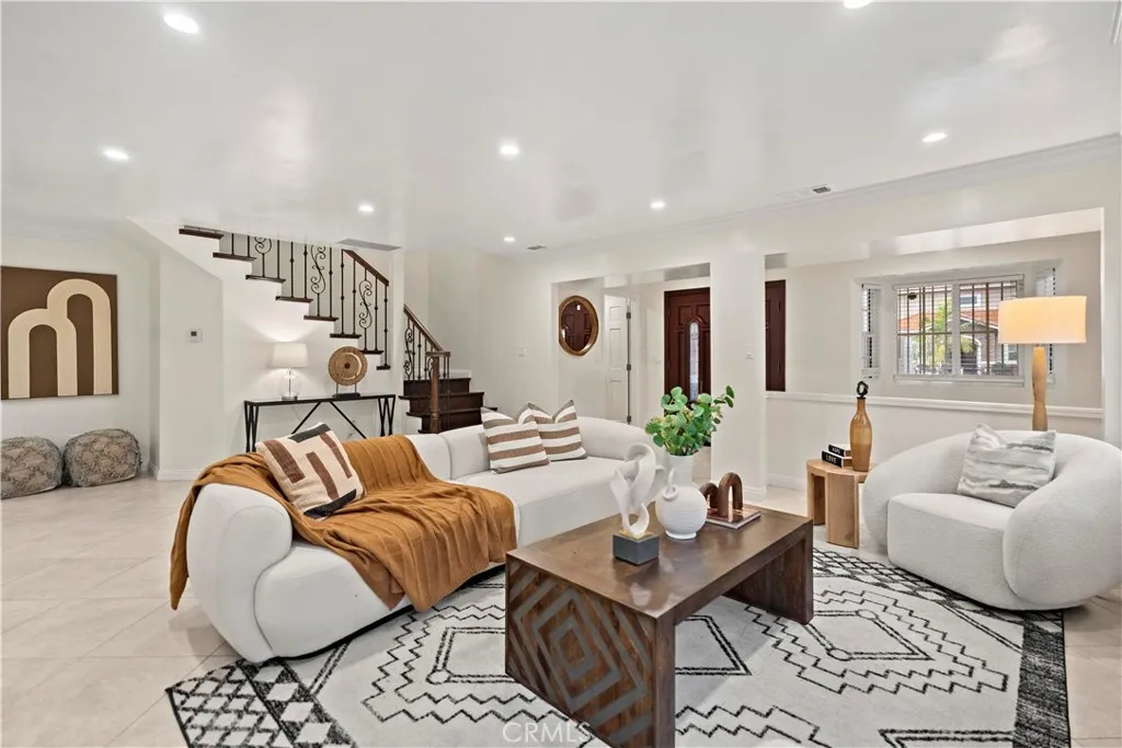 Dont miss this stunning 2-story home featuring a welcoming entry, spacious formal living room, and an elegant fireplace. The bright formal dining area flows seamlessly into the gourmet kitchen with modern cabinetry, quartz countertops. A convenient laundry room with sink sits just off the kitchen. The layout includes a ground-floor en-suite bedroom ideal for guests, plus generously sized bedrooms upstairs, including a primary suite with dual sinks, stall shower, and two closets. The large backyard is perfect for grilling, relaxing, or gardening, and the oversized 2-car garage offers direct interior access. Potential to build an ADU up to approx. 800 sq ft. Buyer and buyers agent to verify with the city. while being conveniently close to schools, supermarkets, Garvey park, and dining, this home offers comfort, convenience, and timeless appeal.