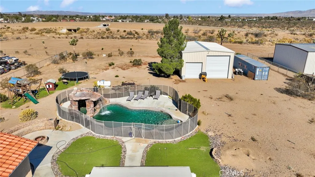 !!!!PAID SOLAR!!!! Rare High-Desert Modern Farmhouse Retreat on 1.14 Acres Privacy, Upgrades, and Resort-Style Living! Step into a rare High Desert treasure a spacious and private sanctuary set on 1.14 acres border-lining Phelan, Oak Hills, and Victorville. This beautifully designed 4-bedroom, 2-bath home offers approximately 2,148 sq ft of living space and comes with PAID SOLAR, giving you comfort and efficiency. From the moment you arrive, the charm begins: a gentle desert breeze greets you on the welcoming front porch. Inside, the open living area is anchored by a cozy wood-burning stove. New tile flooring throughout enhances the clean, cohesive modern-farmhouse feel. The kitchen is a true centerpiece, offering stainless steel appliances, a movable center island with wood countertop, double oven, cooktop, dishwasher, microwave, and abundant cabinetry finished in a stylish distressed look. With views of the expansive backyard, the kitchen seamlessly blends indoor and outdoor living ideal for entertaining or everyday comfort. The primary bedroom has been thoughtfully expanded into a truly luxurious suite, featuring 2 walk-in closets, a fireplace, and a beautifully upgraded ensuite complete with double sinks, a vanity area, and a walk-in shower. The additional three bedrooms are generously sized, and the second bathroom features a spacious layout with a shower/tub combo and tile countertops. The laundry room is conveniently tucked away in its own dedicated closet. Step outside and embrace resort-style living: a sparkling in-ground pool with rock slide, spa with a grotto wa