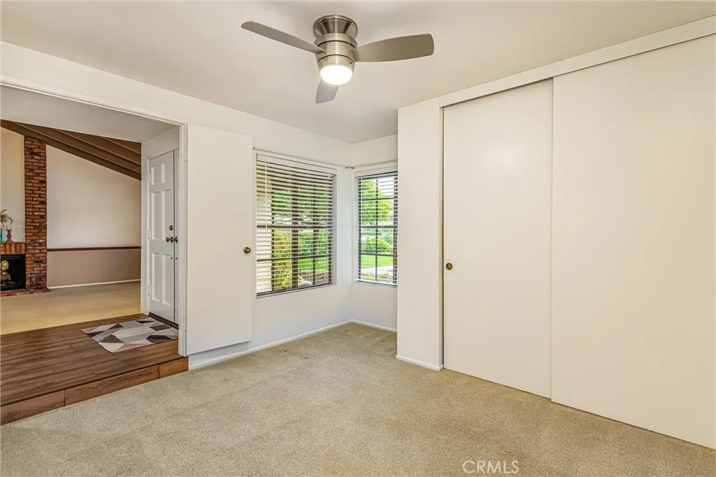 Beautifully updated SINGLE STORY, POOL home! Move-in ready and full of pride in ownership. This well-maintained 4-bedroom, 2-bathroom home offers 1,940 sq ft. of comfortable living. Step inside to find stunning original wood vaulted ceilings that add a spacious feel without sacrificing the warmth and intimacy of the defined spaces. The entry and hall feature wood-look tile flooring, adding both durability and style, and lead you right into the living and dining area featuring a cozy fireplace, ideal for entertaining and relaxing evenings. The front bedroom with double doors is an ideal space for a home office or craft room, featuring large windows that overlook the front yard. The thoughtfully remodeled kitchen is a true highlight of the home. Large windows frame the serene views of the backyard, filling the space with natural light and creating a seamless connection between indoor and outdoor living. Custom cabinetry with soft-close hinges, beautiful granite countertops, and porcelain tile give the kitchen a refined yet welcoming feel. The open layout flows effortlessly into the family room, where an eat-in peninsula breakfast bar invites casual meals and conversation, and sliding doors provide easy access to the backyard. The hall bath includes a dual vanity along with a shower/tub combo with a beautiful tile surround. The primary en-suite offers added convenience with a custom dual vanity with integrated electrical outlets, step-in shower and a separate custom walk-in closet system. Enjoy the outdoors in your private backyard haven, complete with a pool and spa, oversize