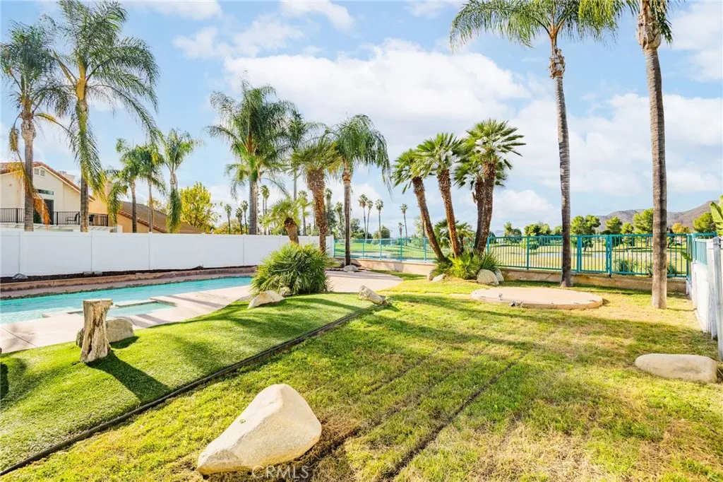 Welcome to this beautifully maintained Menifee Lakes pool home, offering stunning golf course and hill views from one of the communitys larger lots. With 3 bedrooms, 2 bathrooms, and approximately 1,329 square feet of comfortable living space, this home blends indoor comfort with outdoor enjoyment. Step inside to a light and bright interior accented by laminate flooring, recessed lighting, and a cozy fireplace in the living room. The newer windows fill the home with natural light while also showcasing the scenic surroundings. The open kitchen features tile countertops, stainless steel appliances, and a functional layout perfect for everyday living or entertaining. The primary suite offers privacy and an en-suite bathroom, while the secondary bedrooms are generously sized and versatile for guests, work, or hobbies. Additional features include newer HVAC, solar panels for energy efficiency, and a 2-car garage with attic access for extra storage. Outside, the backyard is where this home truly shines. Enjoy a sparkling pool, covered patio, and unobstructed views of the rolling hills and lush fairwaysan ideal setting for relaxing afternoons or gathering with friends and family. Located in the sought-after Menifee Lakes community, residents enjoy nearby parks, golf, walking paths, and convenient access to shopping, dining, and schools. This home is move-in ready and perfectly positioned to enjoy the best of Southern California living.