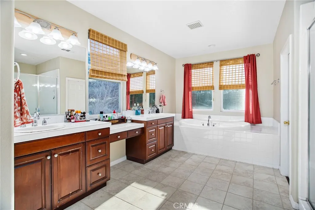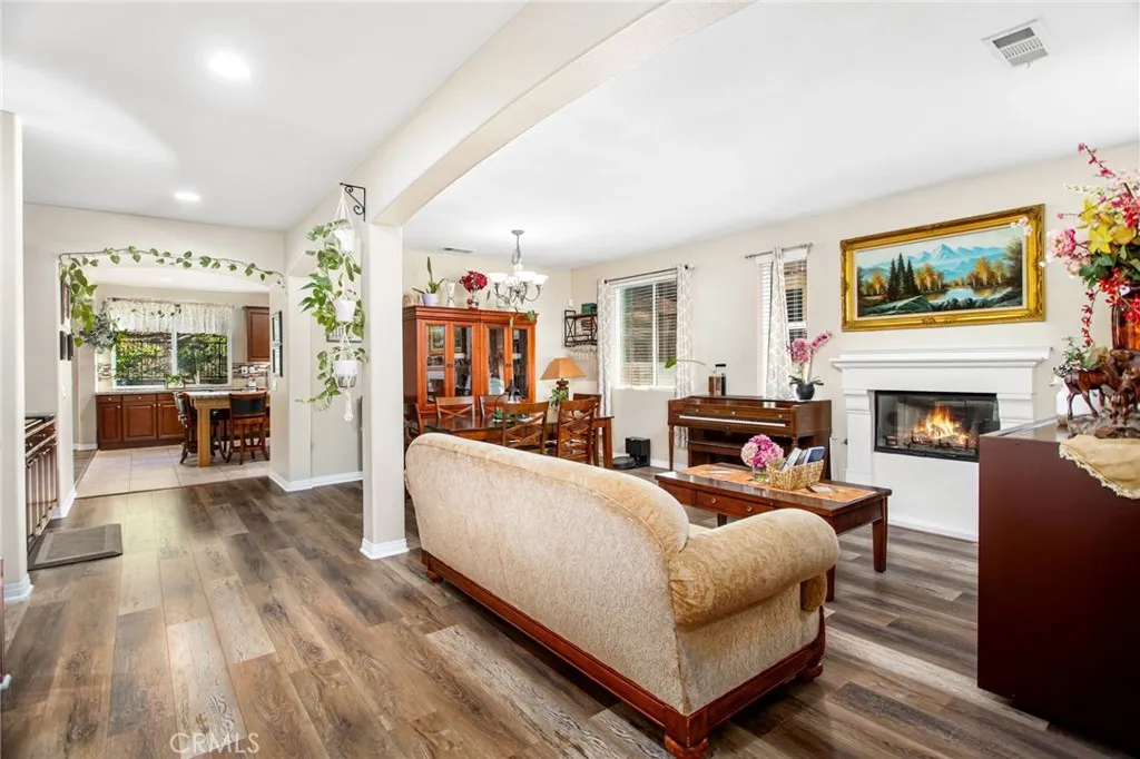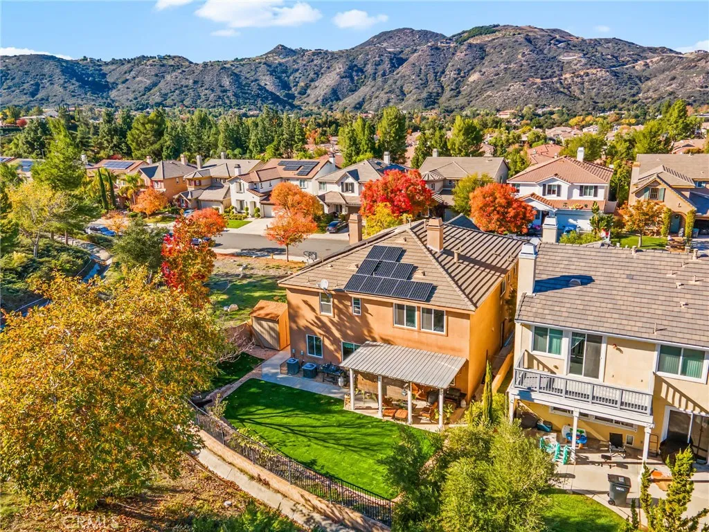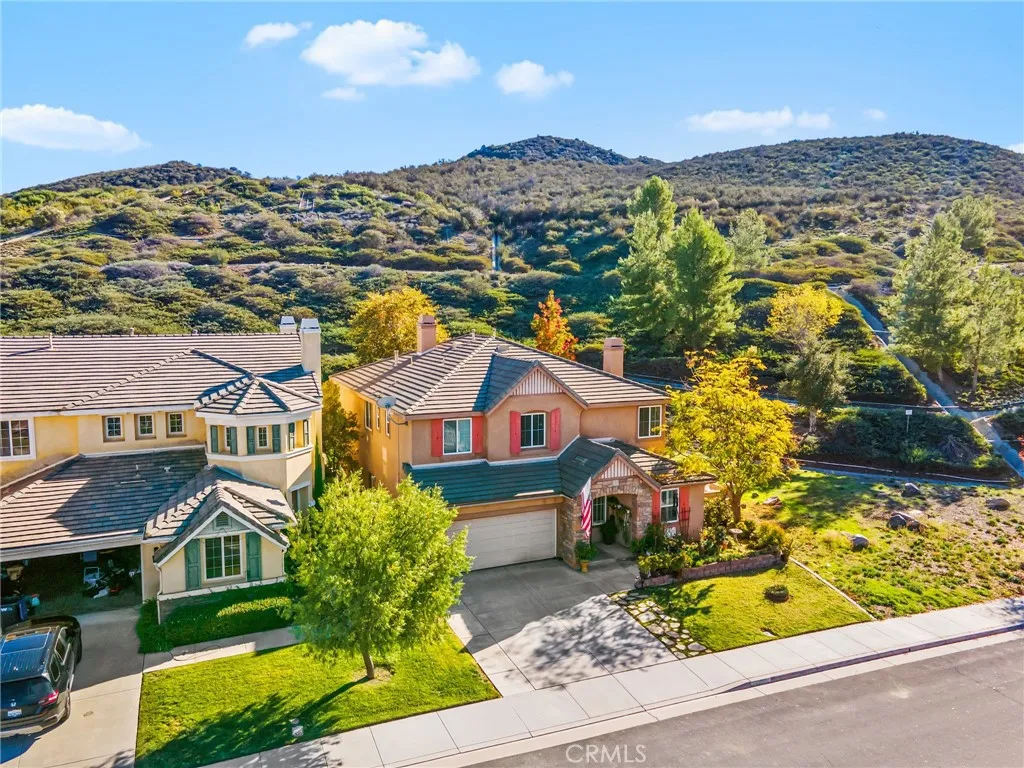 Nestled in the Copper Canyon community on the west side of Murrieta, this spacious 5-bedroom, 4-bath home offers 3,646 sq. ft. of well-planned living space with a private setting and only one neighboring property. The location is tucked against the hills and offers top rated schools. The main level includes a full bedroom and bathroom, ideal for guests, work space, or multi-generational needs. The entry opens to a large formal living and dining area with a fireplace and laminate wood flooring. The kitchen features a substantial center island, granite countertops, double ovens, a gas cooktop, tile flooring, and a walk-in pantry, and it flows into the family room with built-in cabinetry. Upstairs offers a generous loft that can serve as a media room, home office, or potential 6th bedroom. Secondary bedrooms each have access to well-appointed bathrooms with dual sinks and tub-shower combinations, including a Jack and Jill layout. The primary suite includes laminate wood floors, a large bathroom with dual sinks, a vanity, soaking tub, walk-in shower, and dual walk-in closets. The backyard features new sod, a covered patio structure, and a private setting with no direct neighbors on one side or behind. Additional highlights include a wrought iron staircase and a solar system to keep the energy bills low. A rare combination of size, functionality, and privacy in one of Murrietas most established west-side neighborhoods.
