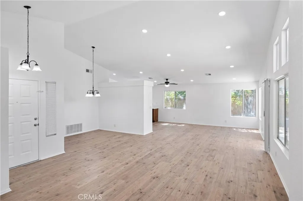 Build in 1994, One story remodeled 4 bedroom and 2 bath single family house located very convenient Westside of Rt 14, in Lancaster . The house featured 4 bedrooms, 2 bathroom at about 1588sf, and 2 car attached garages and back covered patio. Central AC/ Heating. High ceilings, Open and bright, remodeled with new kitchen quartz counter tops and appliances, new sinks and plumbing fixtures, beautiful wood cabinets, fans and Recess lights throughout. New wide Plank Vinyl Flooring. No steps inside house and no carpets inside house. No HOA and no HOA due to pay. The house is newly painted. It is a walking distance to Lancaster high School and Antelop Valley College, easy access to Rt 14, shopping and parks.