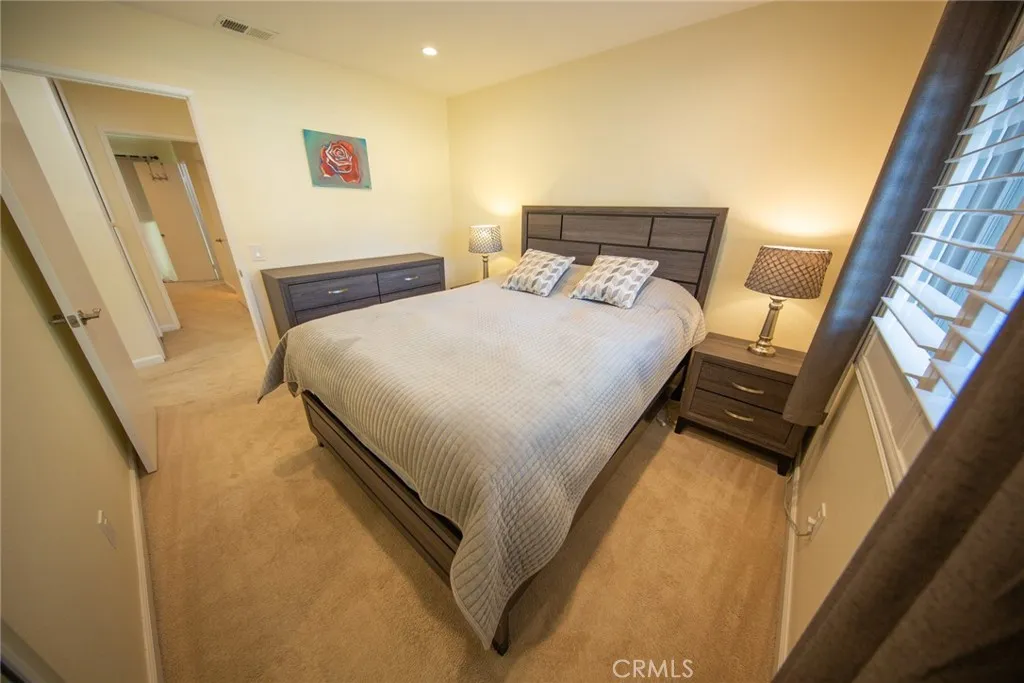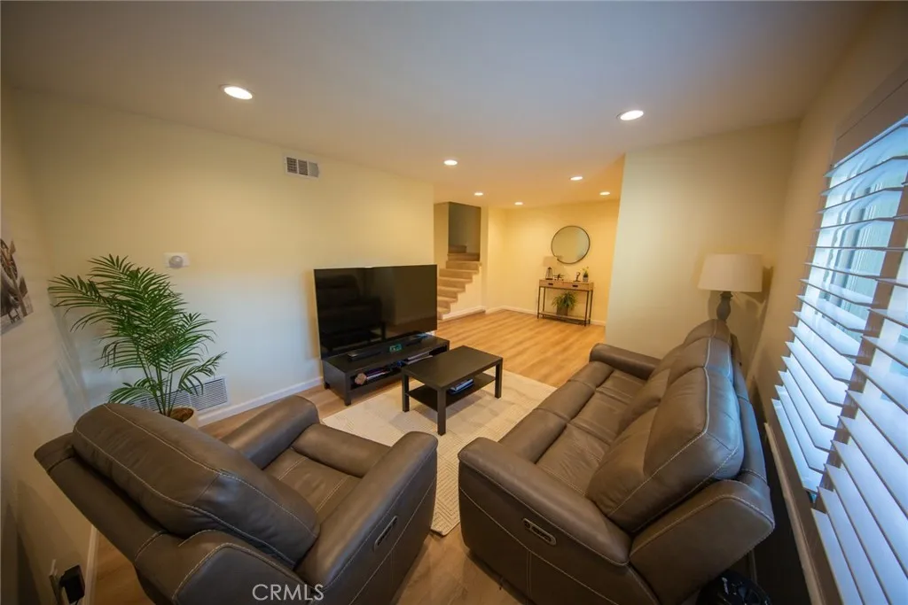 Discover this stunning, upgraded condo in The Lakes community. This three bedroom, three bathroom residence showcases luxury vinyl tile flooring throughout, an inviting open living space, and expansive windows that bathe the home in natural light. LED recessed lighting adds a modern and warm ambiance in every room. The beautifully redesigned gourmet kitchen features Quartz countertops, white shaker cabinetry, premium stainless steel appliances, and an oversized eat in island that is ideal for cooking, hosting, and gathering. Just off the kitchen is an indoor laundry room with a walk in pantry and a dedicated dining area. All bedrooms are located upstairs. The primary suite offers a private patio retreat along with a beautifully finished en suite bathroom. The two additional bedrooms are spacious and share a tastefully appointed bathroom. A guest half bath is conveniently located on the main level. A charming courtyard style patio connects directly to the attached two car garage. The community offers an impressive array of amenities including a pool, clubhouse, BBQ areas, tennis courts, and tranquil lake access where you can take peaceful strolls or enjoy a paddleboat ride. Set within a quiet and secure neighborhood with plenty of street parking, this property also provides easy freeway access and is just a short drive from Orange County. This move in ready home is waiting for its next proud owners.