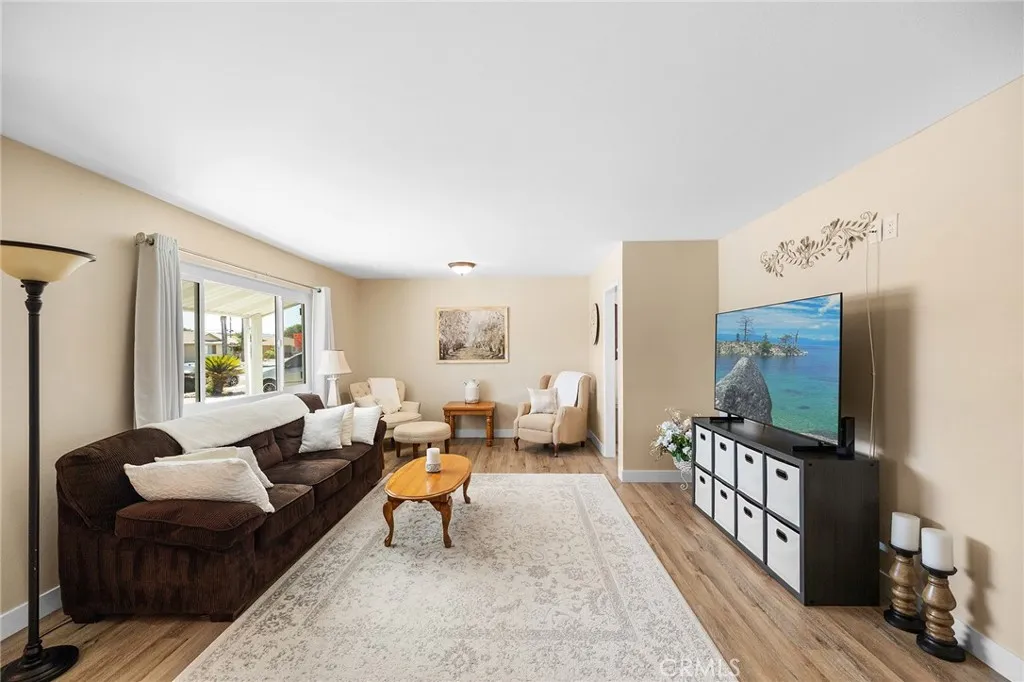 Welcome home to this recently renovated 2 bedroom, 2 bath charmer in an Active 55+ Community in Menifee. There are many updates in this home including new kitchen cabinets with quartz countertops, newer appliances, newer luxury plank flooring throughout, bath remodel and fresh paint. There is a bonus room that is not included in the square footage which adds approx 160 square ft to the home. This lovely home has an open and bright floorplan that flows well and offers plenty of space. There is an indoor laundry room with shelving and a storage/work room accessed from the backyard. There is also a one car direct access garage with new opener and door for added convenience. Other recent updates include new windows, a newer water heater, and newer electric panel. This home features low maintenance front and rear yards with rock scape, rose bushes and various trees and shrubs and a fenced yard. This home is in the Del Webb 55+ community which has a very low tax rate and low HOA of only $34 per month. The HOA amenities include two pools, one heated year round, spa, clubhouse, billiards, Outdoor games, fitness center and lots of classes and activities! Don't miss the opportunity to make this your new home! Call Lisa today to schedule your appointment.