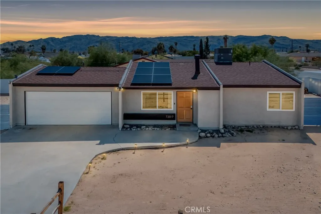 Welcome to 5564 Mariposa Ave, a lovely 3 bedroom 2 bath home located in the charming Chocolate Drop neighborhood of 29 Palms. As you step inside you'll notice the modern, functional layout and lovely open-concept living room complete with a corner fireplace, peaked ceiling, a glass sliding door that leads to the back patio and several windows that let in an abundance of natural light. This home features 1269 sqft of living space complete with earth-toned tile flooring, a convenient in-door laundry closet and an attached/finished 2 car garage. The kitchen boasts ample cabinet & counter space, matching white appliances, bar seating, recessed lighting and a picture window above the kitchen sink. Not to mention, this home's neutral color palette makes it extremely versatile for any decor and style. The primary bedroom adorns carpeted flooring, a ceiling fan, a walk-in closet and an ensuite bathroom with a single sink vanity & a shower/tub combo. The 2 additional bedrooms have matching flooring & the hall bathroom follows suit with a single sink vanity and a shower/tub combo. Outside you'll be delighted to find a fully fenced yard with some privacy fencing, a nice covered patio and plenty of space to entertain or relax around a fire-pit on a starry desert night. With close proximity to downtown, schools, shopping, restaurants and more, all that's missing is you! Come take a look & let this home's charming allure do the rest, your new desert home or weekend retreat awaits!