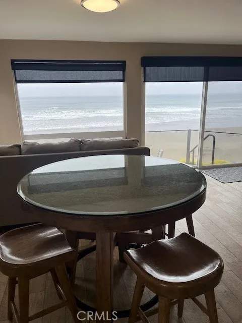 This charming oceanfront home offers spectacular 180-degree views of sand and surf as well as Morro Rock and Cayucos Pier. Upgraded kitchen with a gas 5-burner cooktop and large gas oven, granite countertops, and upgraded cabinets. The open floor plan offers a picnic-style table, as well as a round gaming table, and a sitting area overlooking the patio. As well as a stainless steel double-door refrigerator combo. The main living area includes a sofa, a love seat, and a gas-log fireplace. All non-bedroom floors are finished with a light wood grain laminate. The beautiful two-bathroom showers and tub walls are finished with an impressive array of tilework. The 4 bedrooms are ample in size with an armoire and dressers. From the living area, entering through the glass slider to the inviting patio features paver floors, tempered glass wind break, and an outdoor shower. Has a private stairway down to the beach. The large garage includes a workbench area and a fold-down ladder for more storage, there is also a washer and dryer.