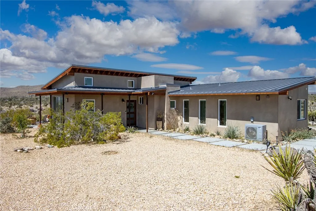 2 HOMES ON 5 ACRES INCOME POTENTIAL + INCREDIBLE VIEWS! Heres your rare chance to own a versatile 5-acre desert retreat in Landers, with two separate homes and stunning panoramic views of the surrounding Mojave landscape. Whether you're looking to live in one and short-term rent the other this unique setup delivers comfort, flexibility, and opportunity under the wide-open desert skies. The main residence is a spacious triple-wide 3-bedroom, 2-bath manufactured home on a permanent foundation, offering over 2,000 square feet of thoughtfully designed living space. Abundant clerestory windows and plantation shutters fill the home with natural light, while thoughtful updates like laminate flooring, a stacked-stone gas fireplace, and a combination of central A/C and wall-mounted evaporative cooling ensure year-round comfort. The primary suite includes an extended sitting/reading room and a luxurious bathroom with dual sinks, a separate soaking tub, and standalone showerperfect for relaxing after a long desert day. The detached 3-car garage, nearly 1,000 square feet, includes its own bathroom and two storage rooms, ideal for workshop space or future conversion. Between the garage bays, a motorized-door breezeway creates a breezy lounge or game area with uninterrupted views of Goat Mountaina perfect setting for sunsets, gatherings, or peaceful solitude. Tucked to the side of the main home, a thoughtfully renovated 1-bedroom, 1-bath homestead cabin (approx. 620 square feet) complete with modern updates and rustic charm. This property is ideally located to experience everything Land