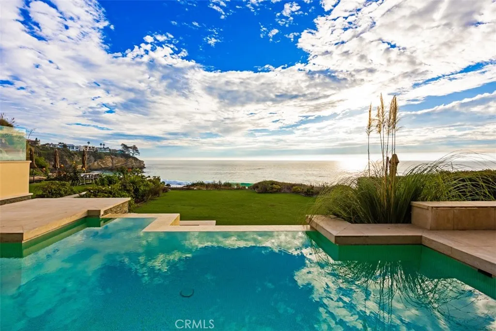 A truly unparalleled offering, this rare oceanfront estate in the coveted, guard-gated enclave of Three Arch Bay presents an extraordinary chance to shape one of Laguna Beachs most significant coastal properties. Poised above the communitys iconic private cove, the residence commands sweeping, unobstructed views of the Pacific and enjoys direct access to the sandan amenity few homes along the coast can claim. Set on a sprawling, flat oceanfront parcel with a pool, spa, and meticulously landscaped grounds, the property offers a spectacular setting where land, sea, and architecture converge. The existing structurestripped to the studs and ready for transformationprovides an exceptional framework for the next owners vision. Towering ceilings, vast expanses of glass, floating staircases, and a commercial-grade elevator lay the groundwork for a world-class contemporary retreat that lives in rhythm with the shoreline just beyond. Every level opens to expansive terraces and floor-to-ceiling sliding walls of glass, dissolving the boundary between indoors and out while capturing the drama of the coastline. The lower level spills effortlessly onto the pool terrace and oceanfront lawn, creating a breathtaking backdrop for everyday living and unforgettable gatherings. Thoughtfully designed in collaboration with FRANK and CJ Light, the home is offered with fully approved plans and permitsan invaluable advantage that allows construction to commence immediately, saving years of time and complexity. The plans also provide the ability to expand, including options for two additional bedrooms